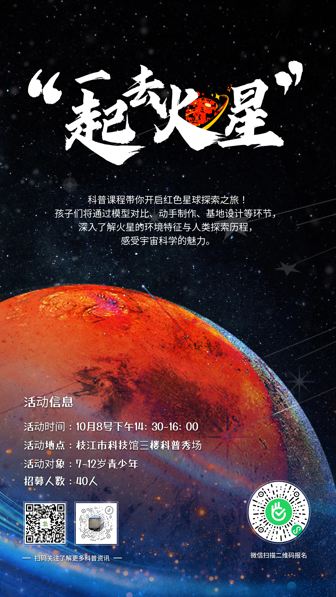 如果有一天人类无法在地球上生存了,人类应该怎么办——外星球移民,那么目前来看,太阳系的八大行星中哪一颗星球最适宜人类移民呢?本次活动带你一起探索神秘的火星。