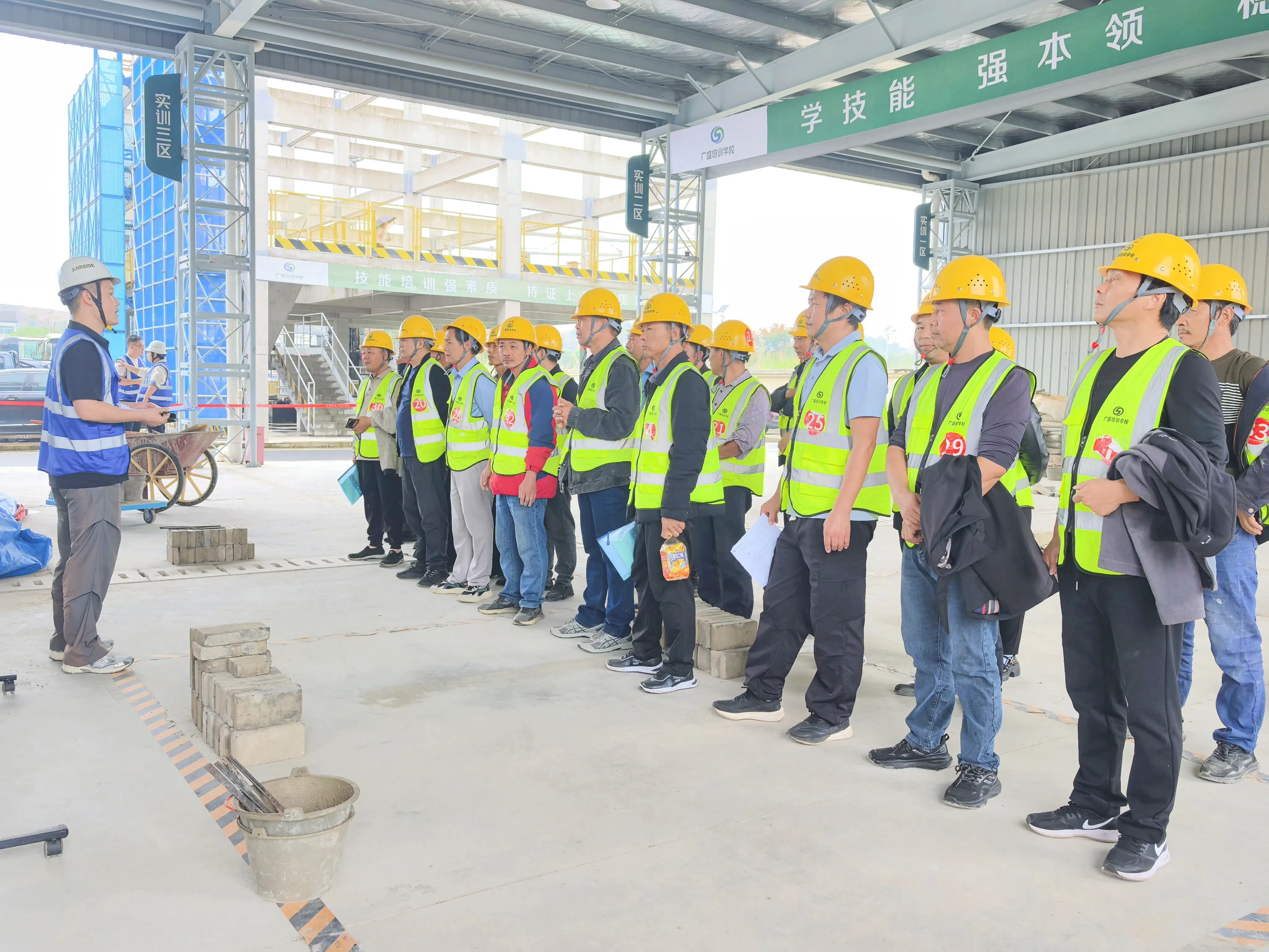 考试将学员分为A、B、C三组,交互进行线上考试、实践考试和VR安全教学。实践场地上,每组分为5队,一队5人,进行“一字型”砖墙砌筑。