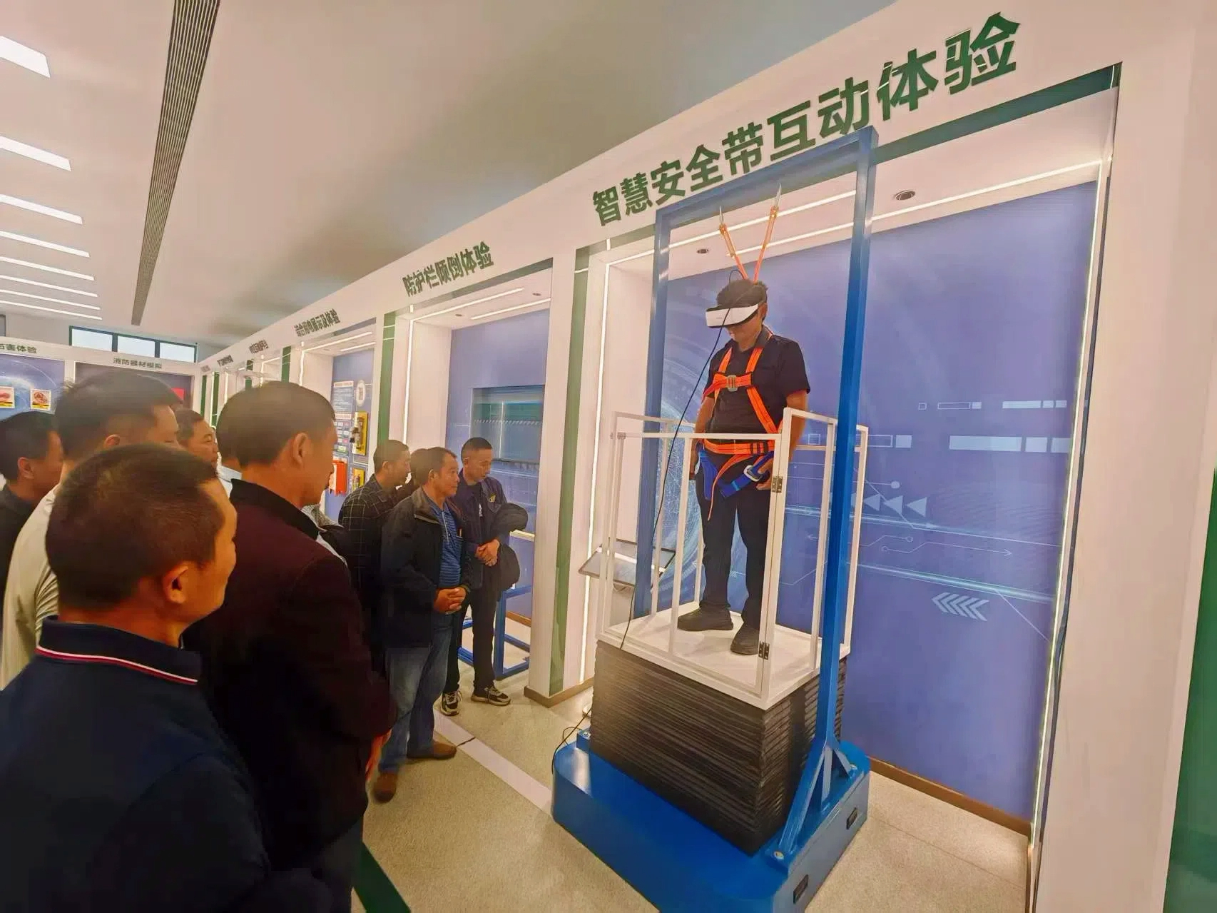 在VR安全体验馆,工匠们系上安全绳、安全帽,亲身感受高处坠落、物体打击、机械伤害、触电等模拟事故现场,通过答题查找施工过程中存在的安全隐患行为,通过示范教学规范施工作业,增强应急处置能力。