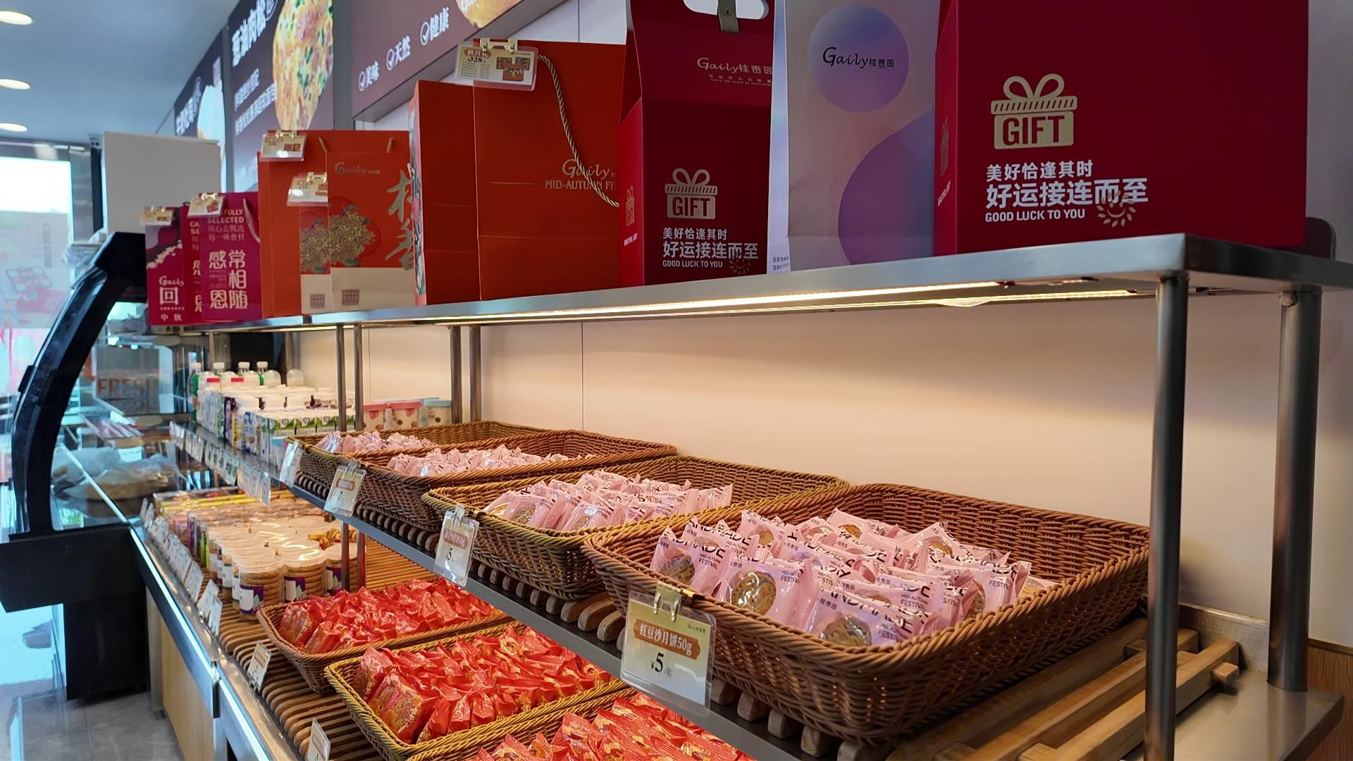 今年,北山超市在保留传统口味的同时,也上架了多款受年轻人喜爱的榴莲、抹茶等新式口味的月饼,以及低糖低油的健康款式,种类繁多,满足不同消费者的需求。