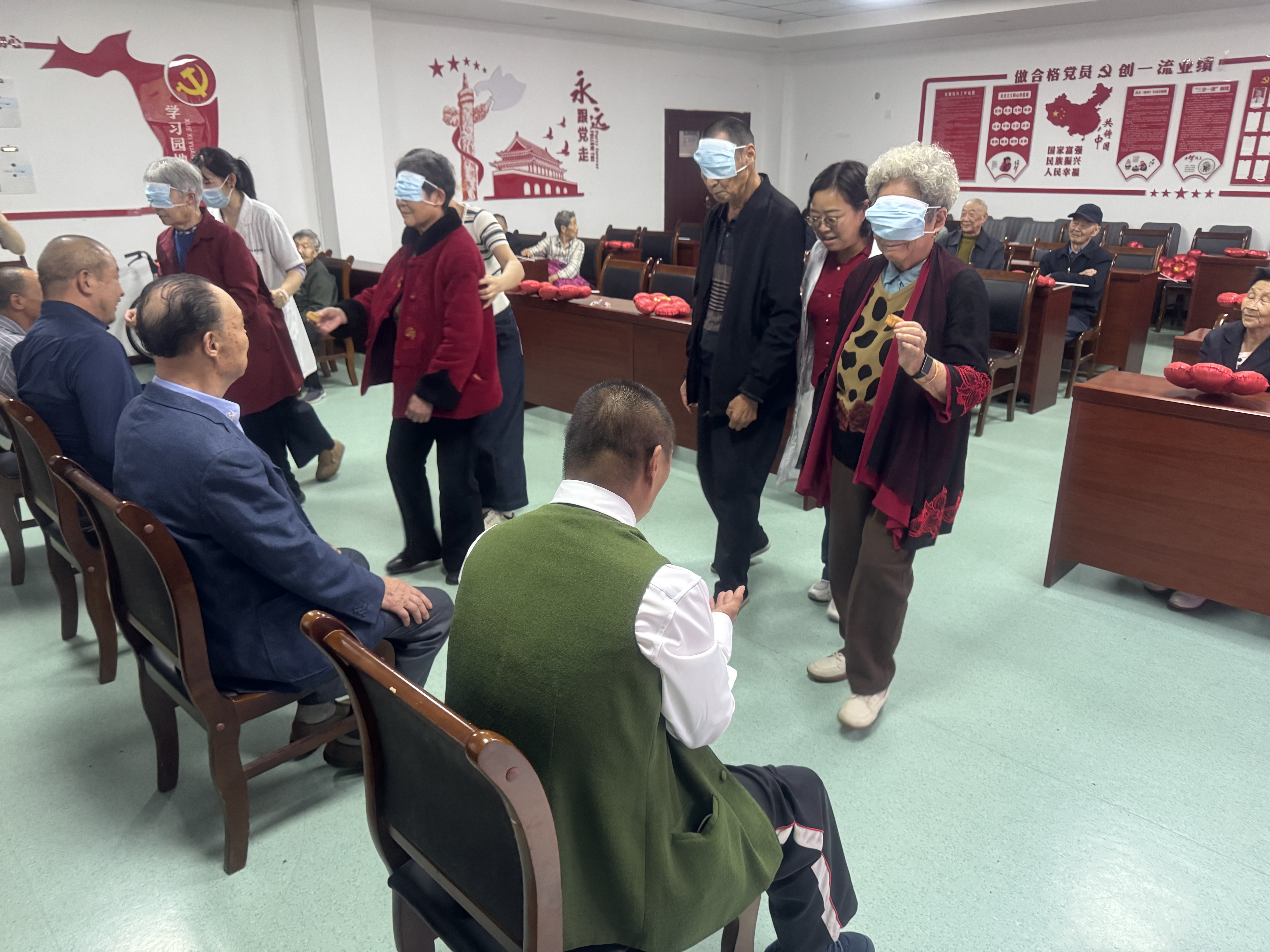 随着主持人一声令下,游戏正式开始。参与者们全神贯注,长辈们在护理员的指挥下,小心翼翼地摸索着前进,现场不时传来阵阵欢声笑语。观众们也被这欢乐的氛围所感染,加油助威声此起彼伏。