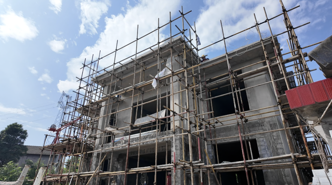 走进孟凡梅家的建设现场,看不到传统工地堆积的砖块、弥漫的扬尘,取而代之的是整齐码放的预制梁柱和工人们精准吊装构件的场景。“老房子是上世纪90年代的红砖房,墙裂、返潮问题越来越严重,子女想帮我重建时,我们琢磨了好久怎么建才省心。”孟凡梅说,多方打听后,家人最终选择了湖北广盛建设集团有限责任公司的装配式农房方案。