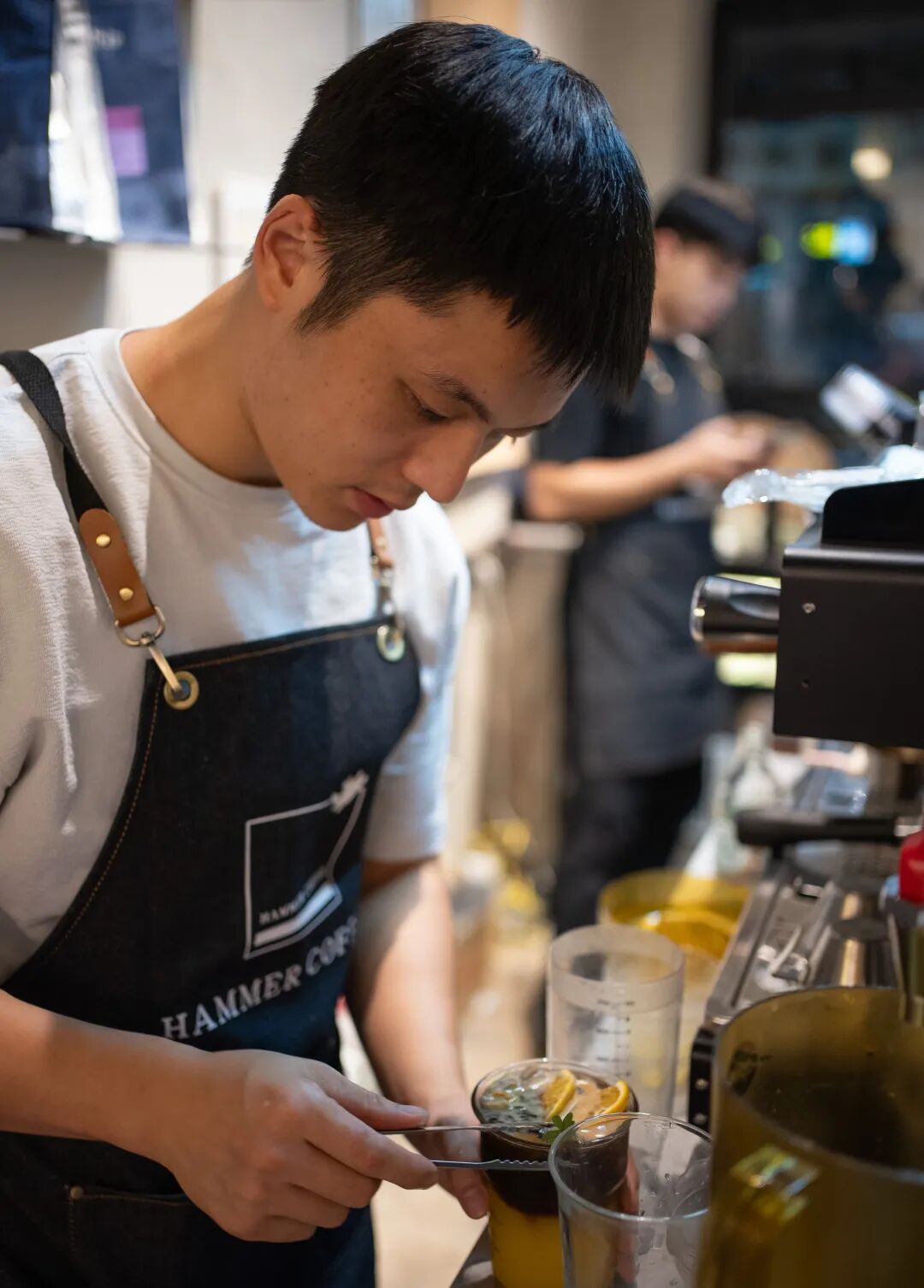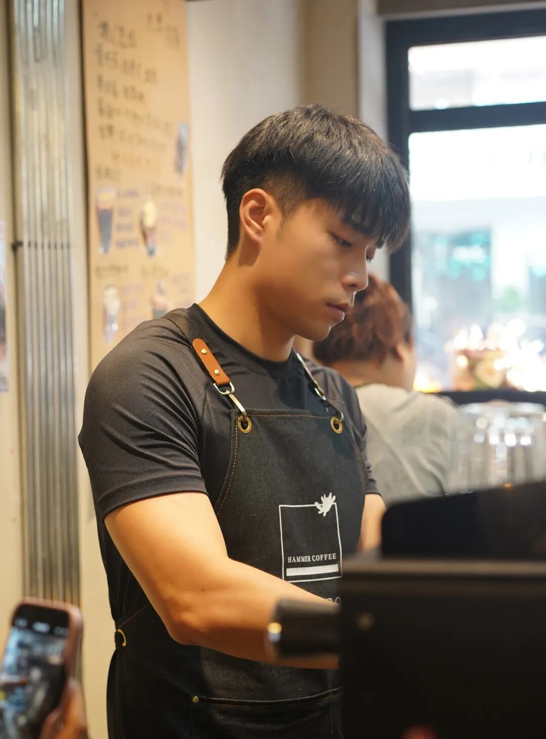 下午3点,店里的另一名咖啡师胡云龙正在吧台里调制咖啡,机器时不时发出声响,混着店内轻缓的音乐,放松且令人愉悦。“我喜欢喝咖啡,当爱好成为工作的时候,每一天都是令人期待的。”胡云龙说。