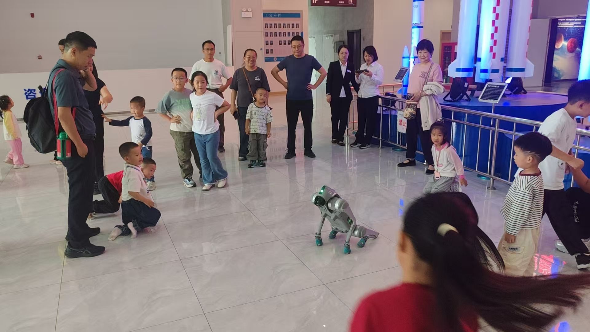 作为科技馆的流量明星,机器狗在这个双节假期也吸引了大批粉丝。观众们早早地等候在表演区外,表演时与机器狗积极互动,比心、握手、模仿机器狗的舞蹈动作,现场不时传出阵阵欢呼。