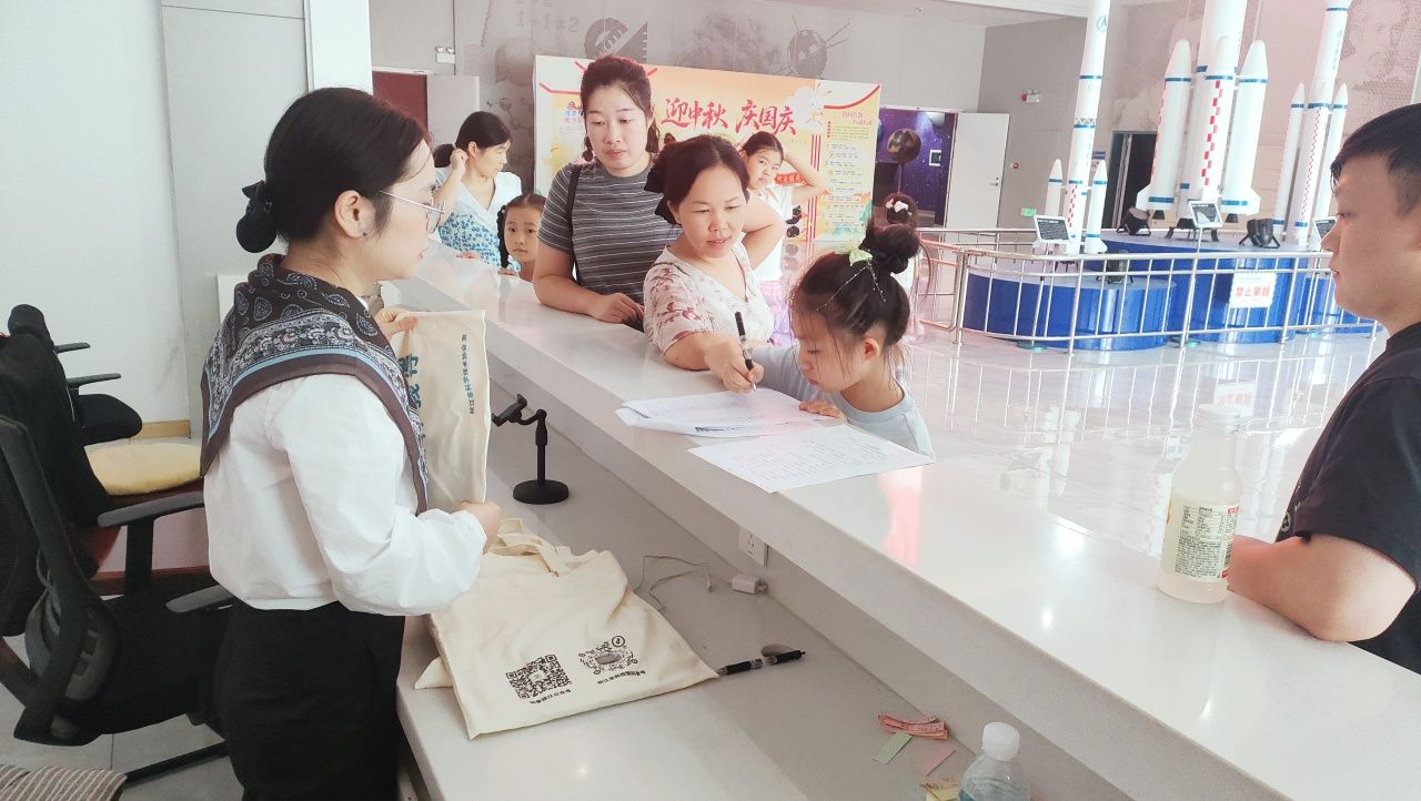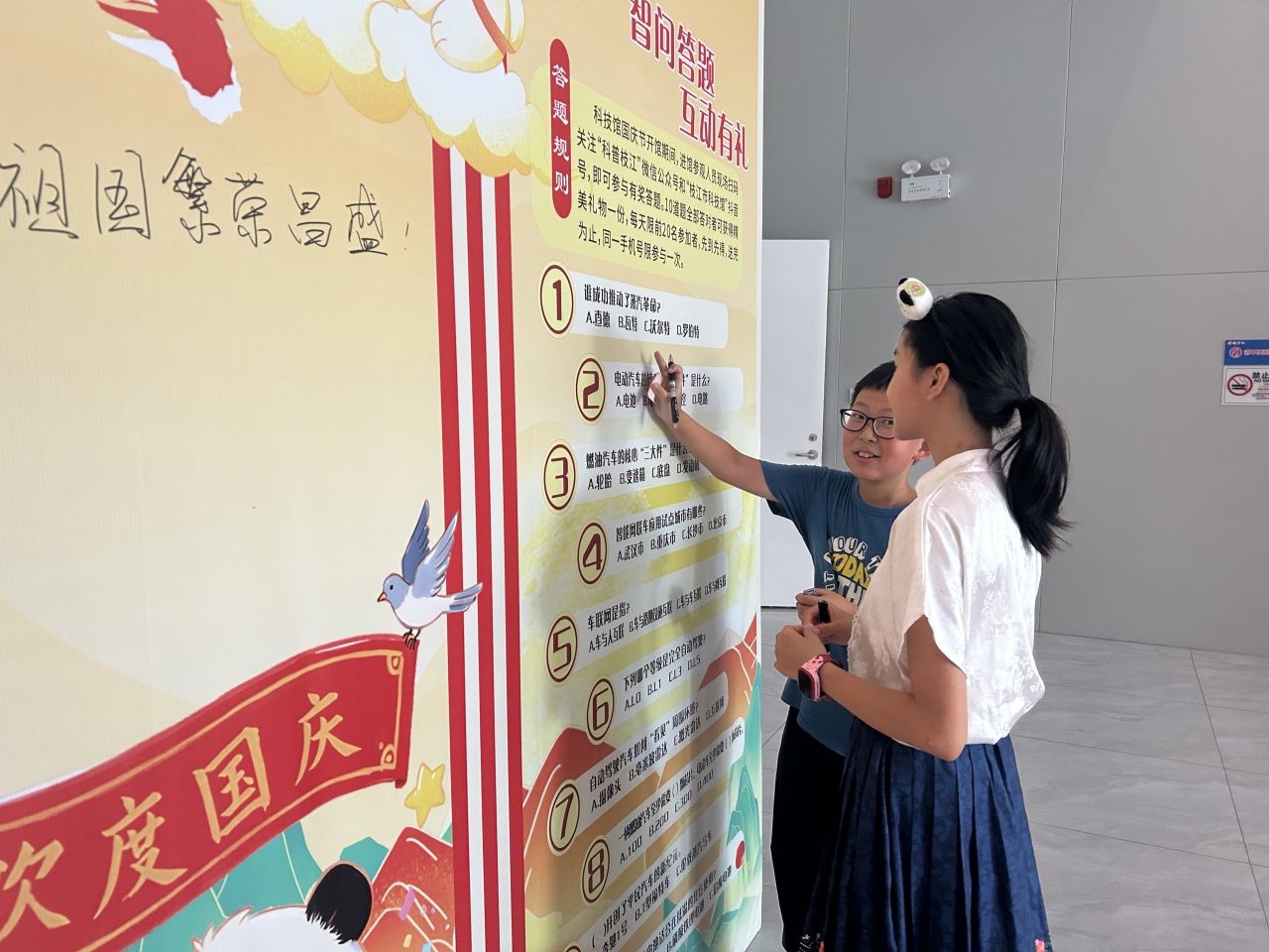 有奖问答活动吸引了许多观众的目光。科技馆以智问车界临展为基础设计10道有奖问答题目,让参观者在了解汽车百年发展历程的同时,也收获了科技馆送出的包含科技小制作、科普口袋书的科技大礼包,在轻松愉悦的环境中感受满满的科技氛围。