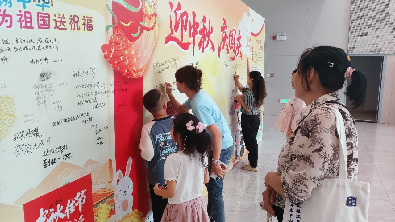 在科技馆设置的祝福留言专区,写满了来馆参观者的留言。他们纷纷用笔写下了对祖国的美好祝愿和对未来的希望,其中“祝福祖国繁荣昌盛”“五星闪耀,照亮山河”“科技强国,我辈当自强”的留言最为精彩。