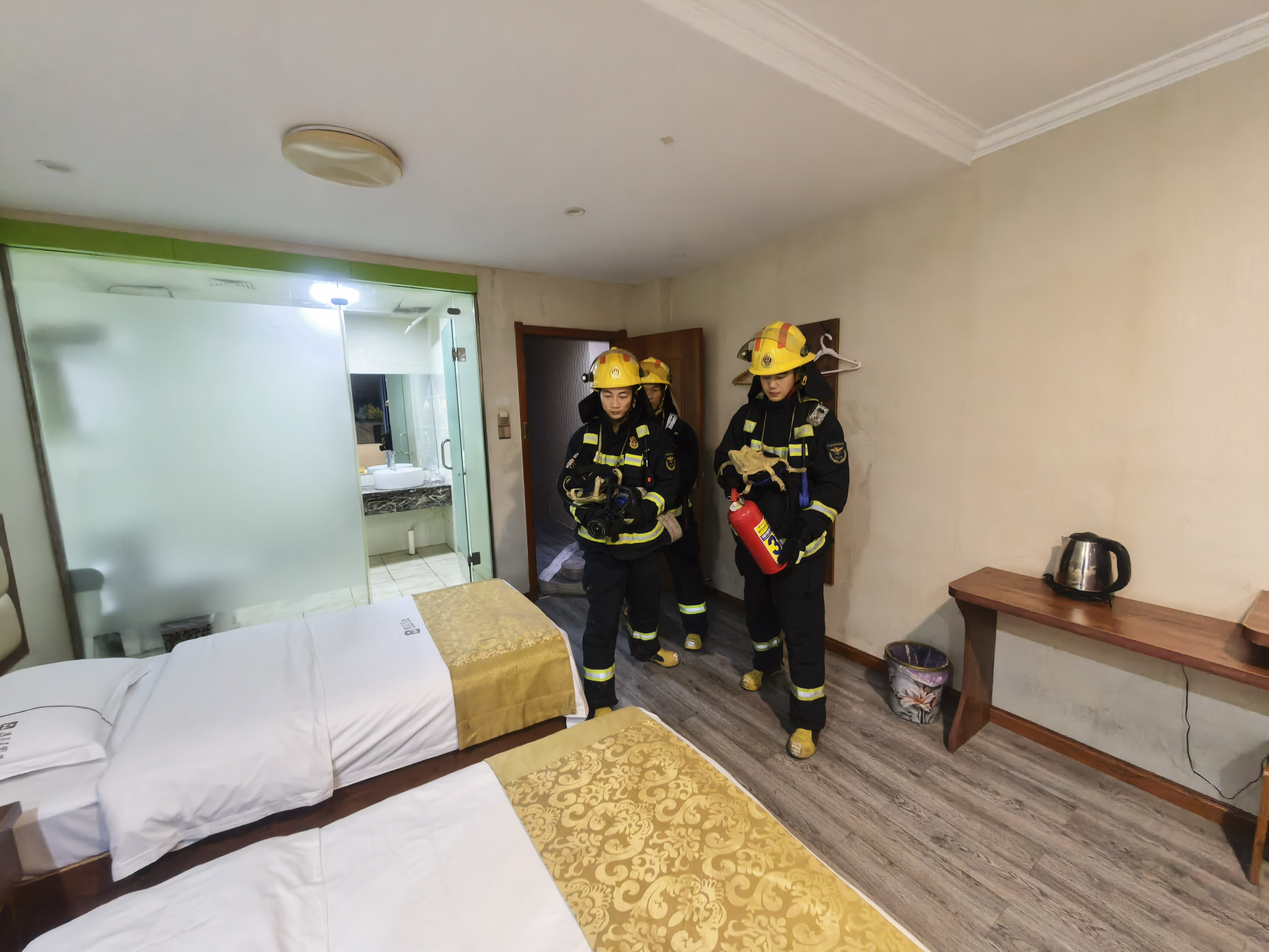 在公园路、江汉大道沿街商业门店,消防站防火班人员对沿街餐饮、住宿、零售等商铺逐一开展消防安全隐患排查,重点排查杂物堆放占用堵塞消防通道、“三合一”场所违规住人等情况。针对宾馆住宿场所人员流动性强、功能布局复杂等特点,消防人员同步开展“六熟悉”和实战演练,有效提高了消防人员对场所的熟悉程度,为今后灭火救援工作打下良好基础。