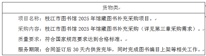 一、项目名称:枝江市图书馆2025年馆藏图书补充采购项目