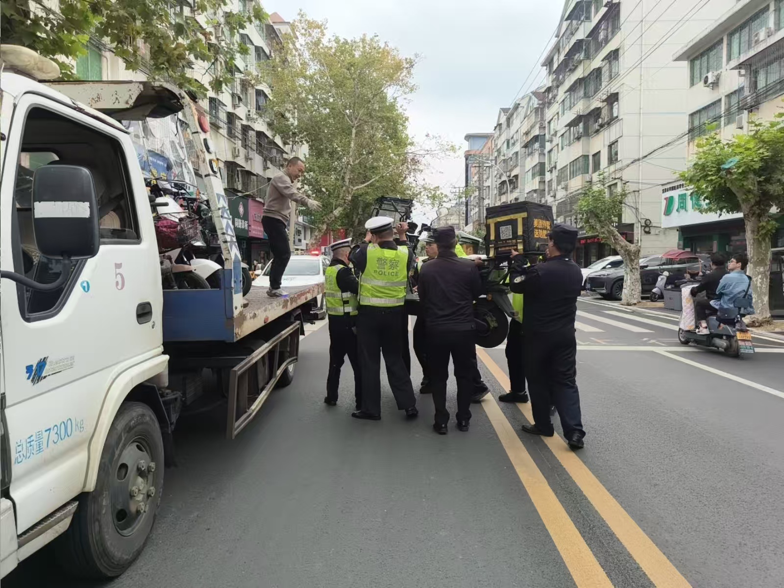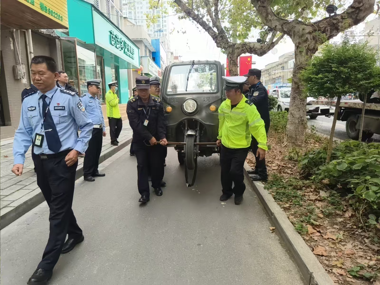 集中整治发力,规范停车秩序。下午集中整治阶段,市城管执法局联合市公安局交警大队调配力量,共计出动人员23名,执法车辆4辆,开展拉网式整治。整治行动针对主次干道、商圈周边等重点区域,主要清理占用盲道、消防通道的非机动车,对商铺门前“扎堆停放”“越线停放”等问题现场督促整改。