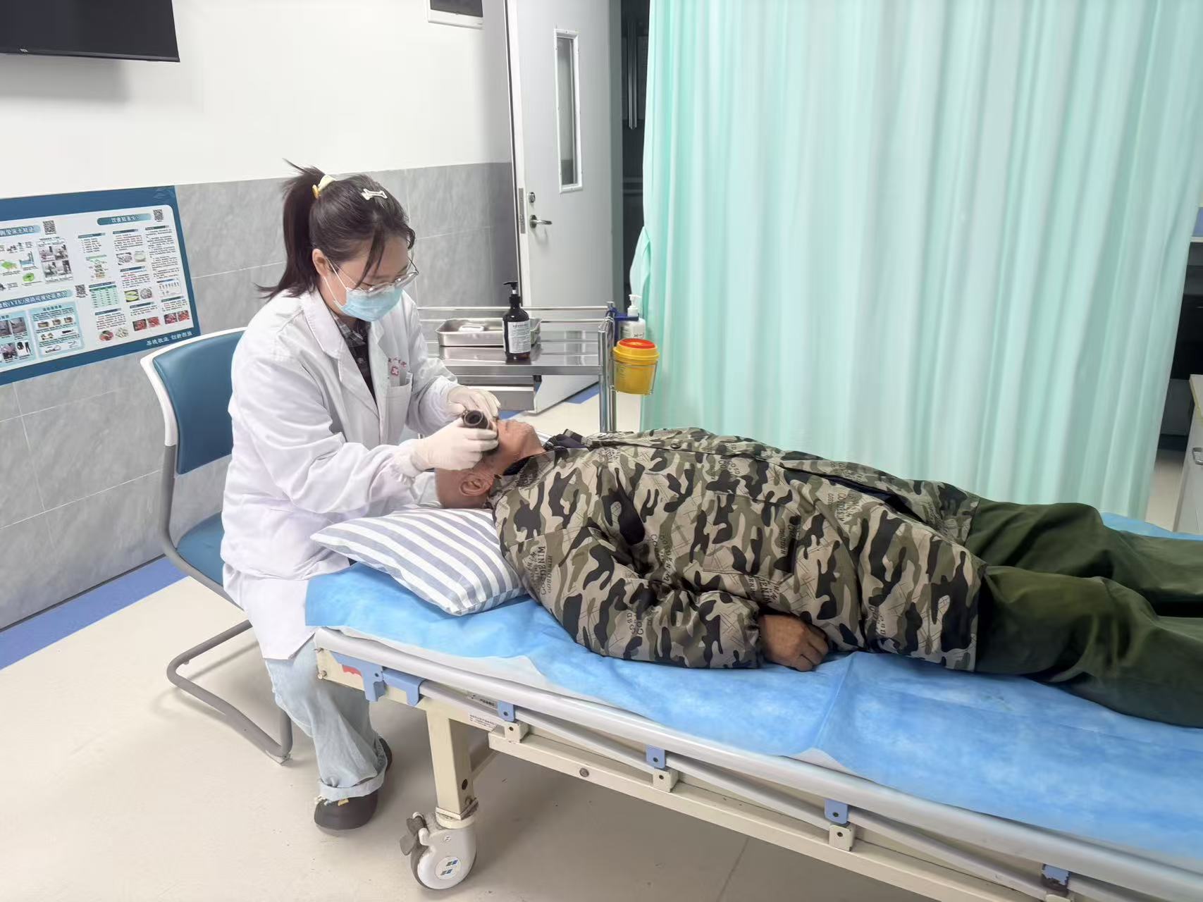 治疗过程中,丁医生精准选取老人面部的攒竹、地仓、颊车等穴位,用细针浅刺以疏通经络;随后,又将特制的火龙罐沿脸部九条经络走罐,借助温热效应促进气血循环,缓解神经压迫。
