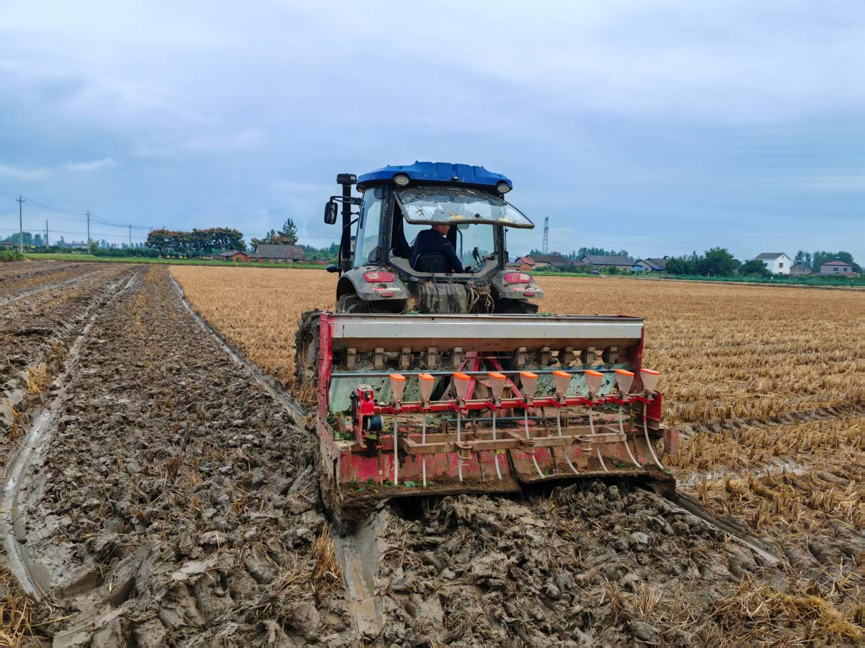 在书院坝村一组的田埂间,沉寂数日的田野再次响起拖拉机的轰鸣声。3台大型旋耕机正开足马力,在泥泞的田地里奋力前行。农机走过,原本板结湿漉、满是稻茬的土地变得松软平整。