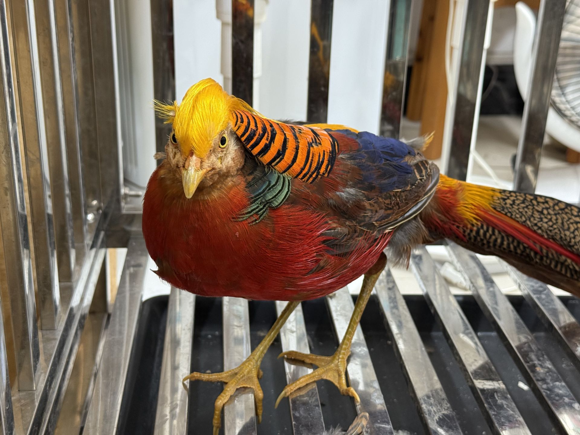 “最近气温骤降,还频繁出现风雨天气,它大概率是因为野外食物匮乏、饥饿难耐,才误闯城区寻找食物。” 保护站工作人员朱家波介绍。现场检查发现,这只红腹锦鸡体态完整,没有明显外伤,但精神状态略显疲惫,可能是长途飞行和环境适应带来的影响。