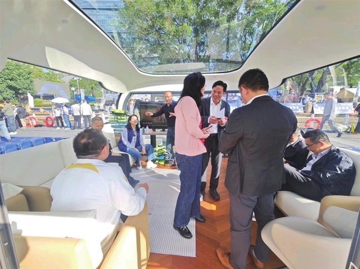 11月15日,由枝江江舶船业有限公司自主研发、设计和建造的“星河”系列无人驾驶船,在广东省广州市海珠区举行的琶洲水上嘉年华活动中向第十五届全国运动会运动健儿和游客开放。