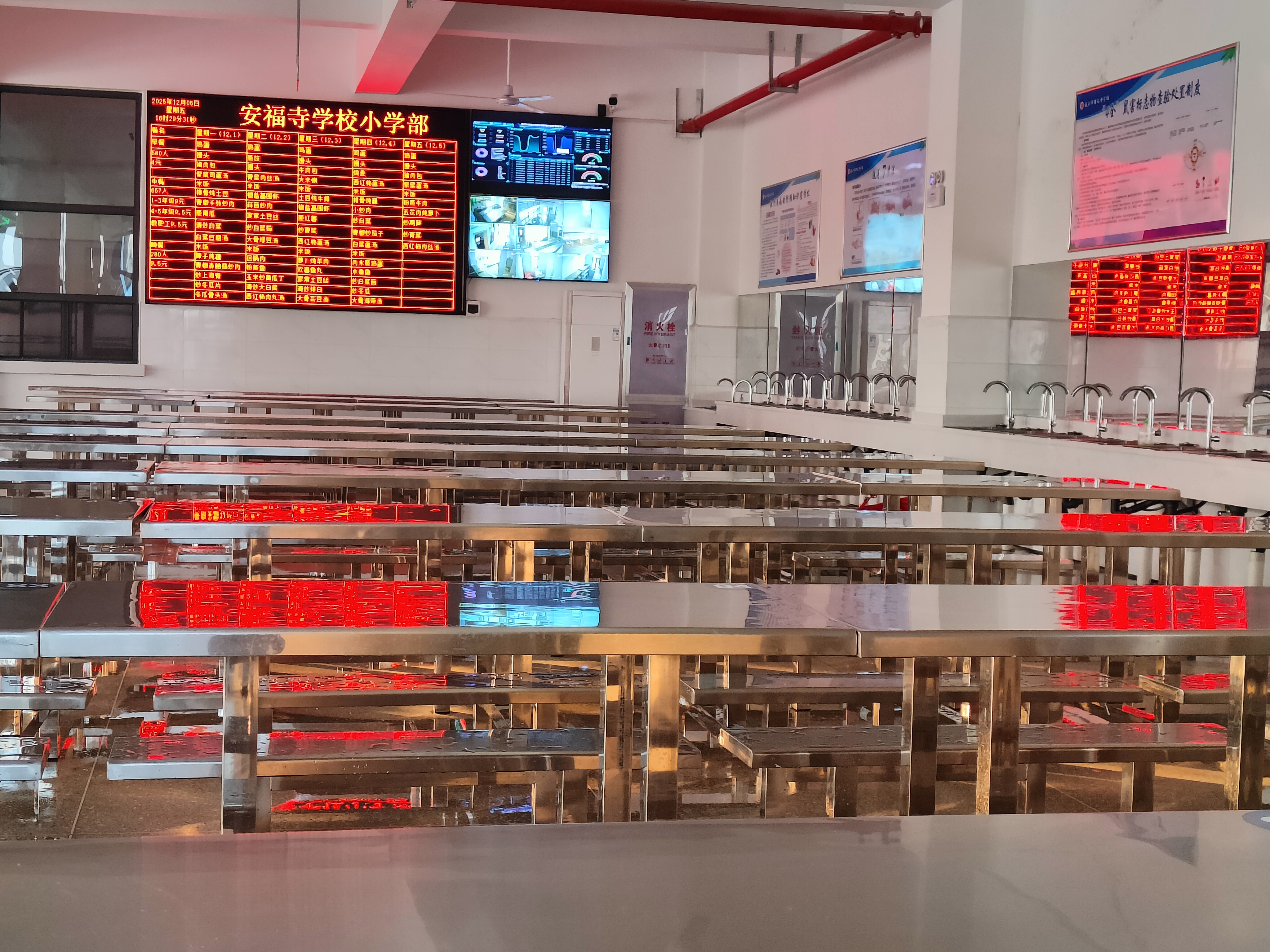 新建食堂共两层,设计科学、功能明晰。一层为就餐区,可同时容纳500名学生用餐;学校专项投入40余万元购置全套全新食堂设施设备,既保障食品安全与加工效率,也为学生营造了舒适卫生的用餐环境。二层则打造为多功能报告厅,配备480个固定座椅,并投资100万余元配齐高品质音响系统、专用桌椅及大型显示屏等设备,可满足学生才艺展示、教学观摩、学术报告及各类主题活动需求,进一步丰富师生校园文化生活。