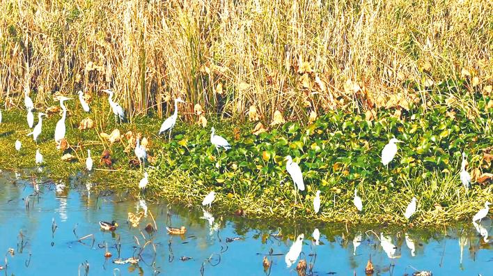 白鹭在水草丛休憩。(枝江市融媒体中心 安超 摄)