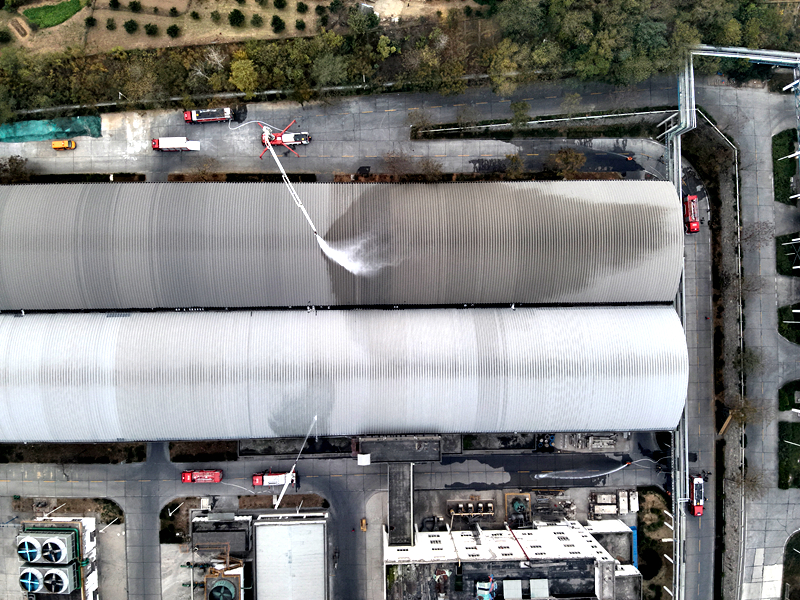 此次演练模拟辖区某大跨度厂房因设备故障引发火灾,火势快速蔓延并形成大面积燃烧,贴合辖区工业场所的实际风险特点。演练围绕空中侦察、地面内攻、水炮协同、高喷车压制、排烟作业等环节开展多维度配合,现场指挥部秉持“救人第一、科学施救”的指导思想,采取“先堵截、后分割、再消灭”的战术措施,紧扣大跨度厂房火灾处置要点灵活运用技战术。