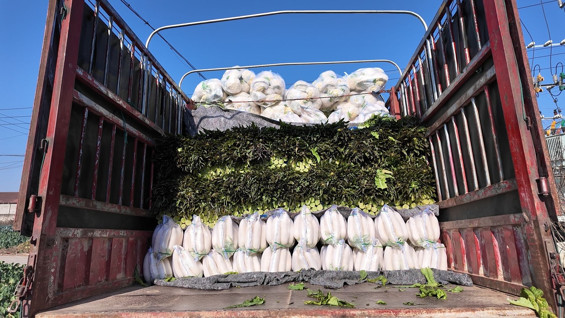 合作社门口,运输车辆络绎不绝。仅一个上午,已有四辆满载蔬菜的大货车发往各地。来自陕西的收购商周林已是这里的老客户了。“我从陕西来七星台镇收货9年,与这家合作社合作6年。这里菜品丰富、价格合理,工人做事也靠谱,合作一直很愉快。”