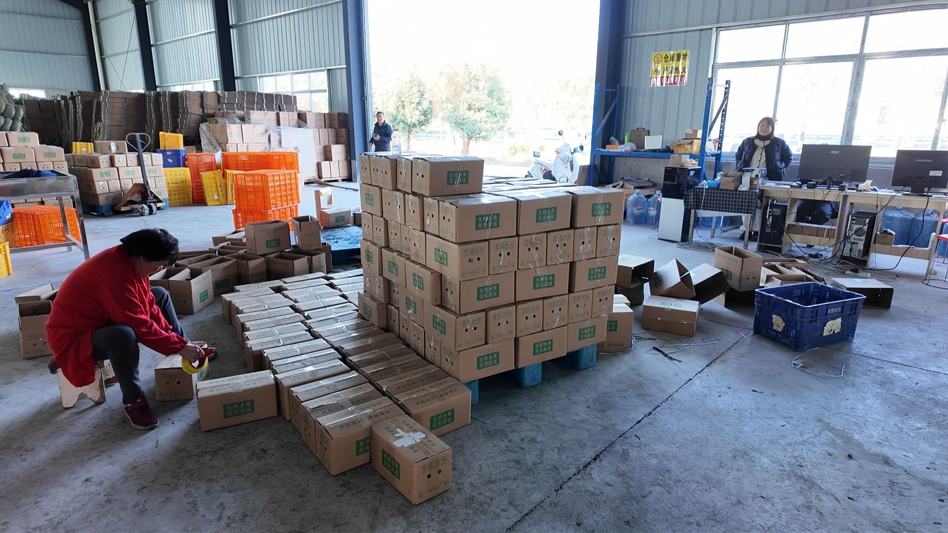 谭小宇蔬菜专业合作社电商仓库负责人向艳介绍:“平均每天可以发一万五千斤,量大的时候两到三万斤,每天收的基本上能卖完,现摘现发很新鲜。”