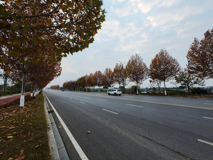 这条连接高速公路、仙女大道、友谊大道、沿江大道,全长约8公里的交通要道,不仅是枝江的“城市玉带”,更是枝江实施“增花添彩”行动的生动缩影。随着秋风吹过,梧桐叶片簌簌飘落,为沥青路面铺就一条金色的甬道,与往来穿梭的车辆构成动静相宜的城市风景线。