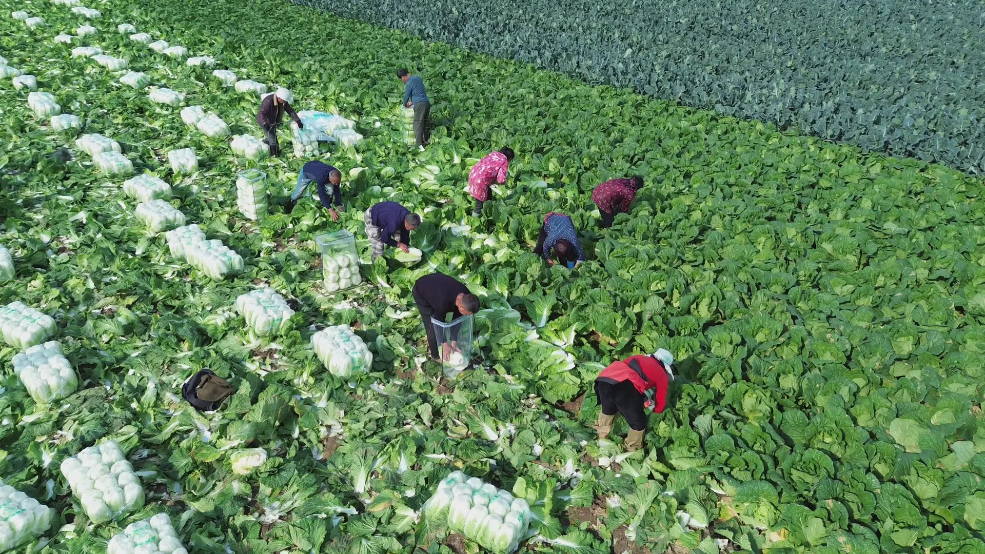 走进七星台镇赵楼子村白菜种植基地,一棵棵大白菜个大饱满、翠绿鲜嫩,菜农们分工协作,动作利落地将白菜从土里挖出,采收、装袋、搬运,一道道工序井然有序。
