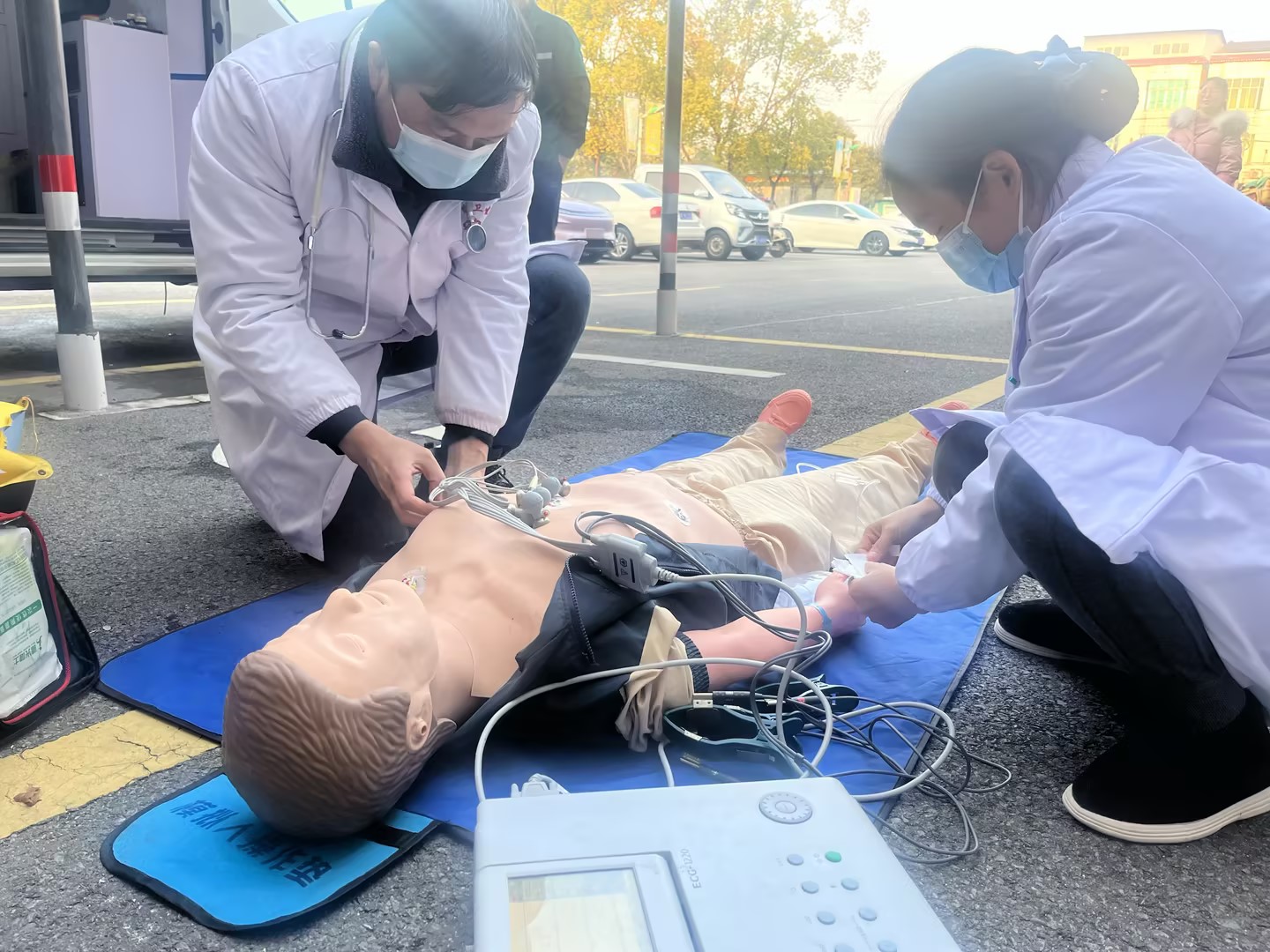 此次培训中,董市镇卫生院副院长徐久恒以“胰腺炎的诊疗规范与鉴别诊断”为主题,结合该院常见病例,系统讲解胰腺炎的病因、临床表现、诊断标准及治疗原则。随后,内科主任医师易蓉围绕“糖尿病急慢性并发症的治疗指南”展开分享,详细讲解糖尿病急慢性并发症的分类、诊断、临床表现及治疗要点,为临床工作提供实用指导。最后,内科副主任医师田红芹通过PPT讲解胸痛患者院前急救的核心内容夯实理论基础,急救站的医护人员模拟真实急救场景,带领参训人员进行胸痛患者的快速评估、心电图操作、胸痛溶栓流程的实战演练,在模拟中熟悉急救步骤、规范操作手法。