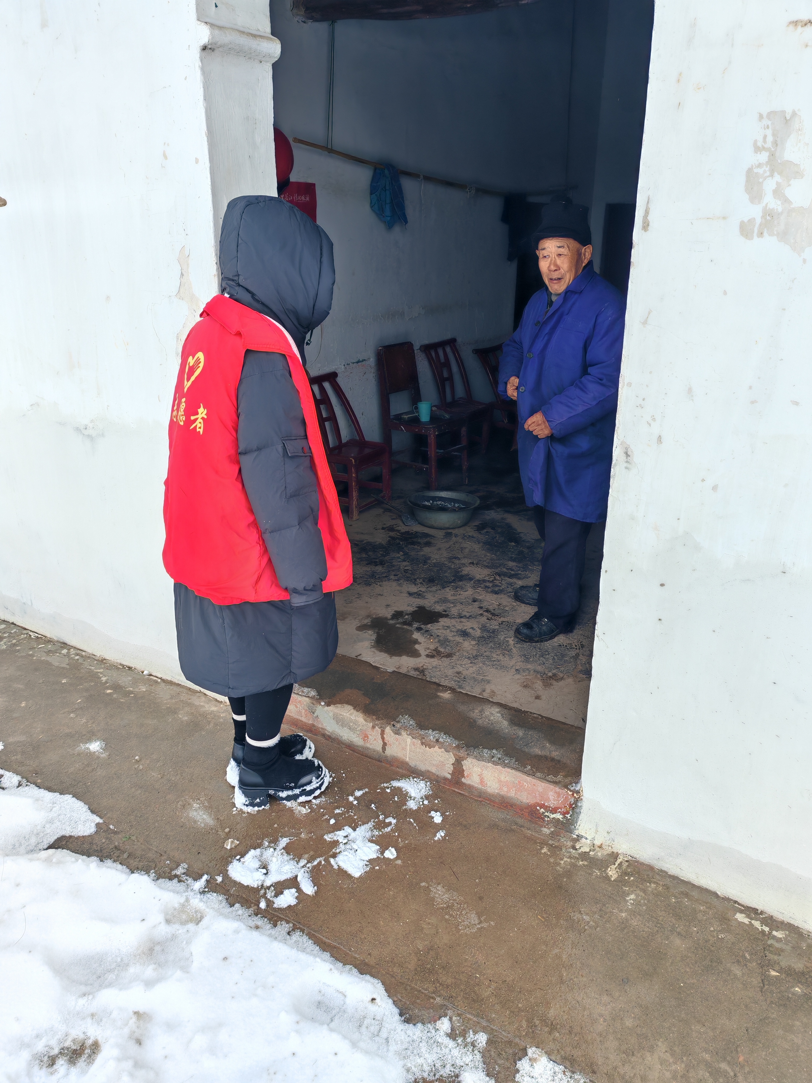 在做好道路保畅的同时,村委会同步开展困难群众暖心走访。志愿者们冒着风雪,走进独居老人、低保户等特殊群体家中,仔细检查房屋保暖、用火用电安全,询问生活物资储备情况,叮嘱老人注意防寒保暖,并为他们送去应急物资,用实际行动传递党组织的温暖。