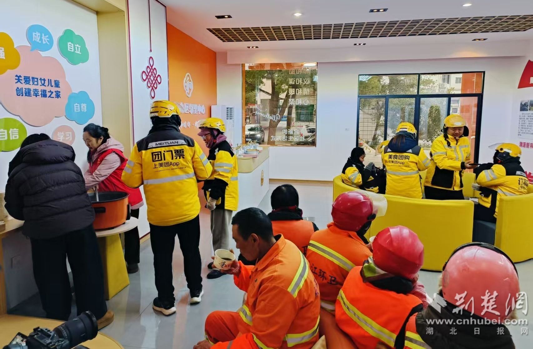 1月19日,寒潮突袭,气温骤降。枝江市总工会联合七口堰社区工会,在新和小区工会驿站正式启动暖冬“益”起行动,为在寒风中坚守的环卫工人、快递员、外卖骑手等户外劳动者送上专属温暖,以实际行动当好职工的“娘家人”。