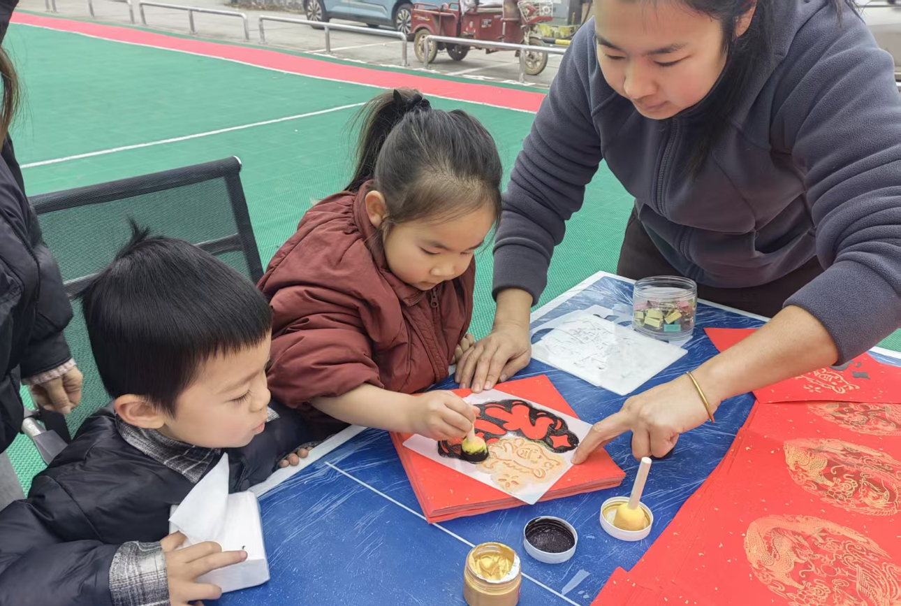 活动现场,村民们欢聚一堂、共包饺子,品尝传统美食、畅谈家常;村内书法爱好者挥毫泼墨,将马年吉祥祝福凝于笔端,一副副喜庆春联跃然纸上。此外,亲子拓印窗花环节趣味十足,让大人和孩子共同沉浸式感受传统文化的独特魅力,为新春佳节增添了浓浓的文化气息与团圆暖意。