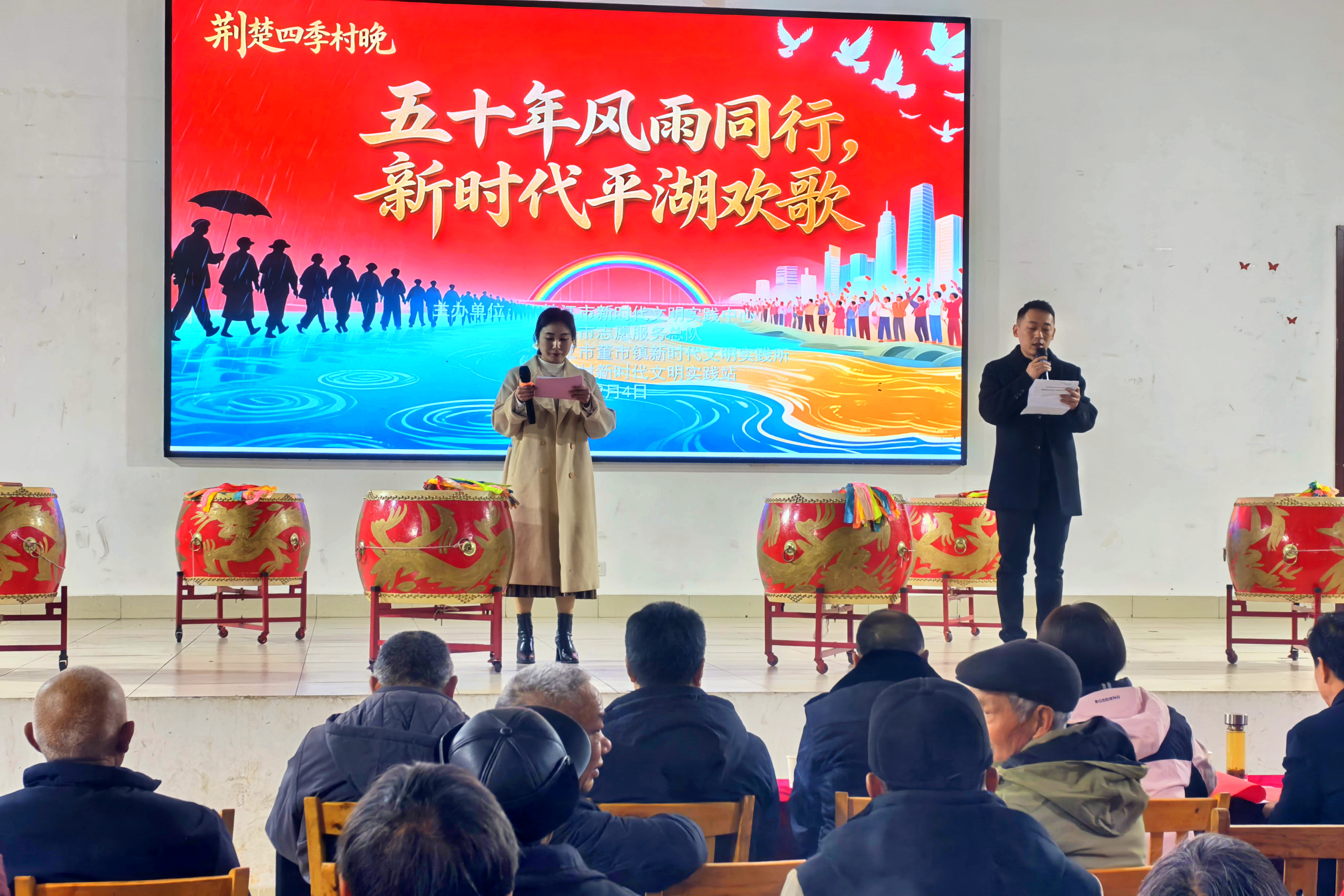 枝江融媒(通讯员 陈黄奎)为庆祝移民搬迁50周年,喜迎2026年新春佳节,2月4日,董市镇平湖村在村文化礼堂文明新风厅举办以“五十年风雨同行,新时代平湖欢歌”为主题的“荆楚四季村晚”活动。平湖村200余名党员群众齐聚一堂,共忆移民岁月,共话发展新篇。