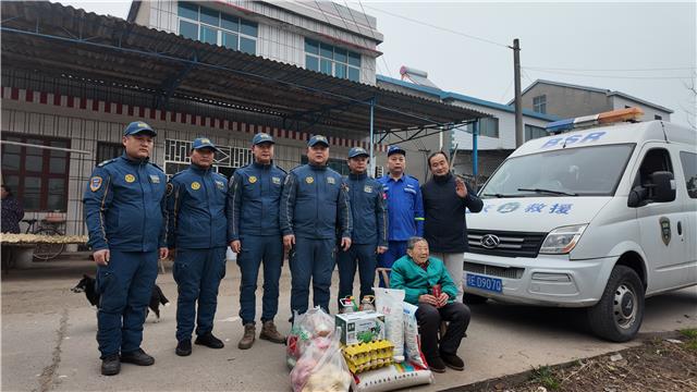 挂牌仪式结束后,分队队员前往杨家庵村开展新春慰问,走访特困老人家庭,为两位老人送上米、面、油等春节年货,用暖心行动把社会关怀送到困难群众身边,彰显民间救援队伍的责任与温度。