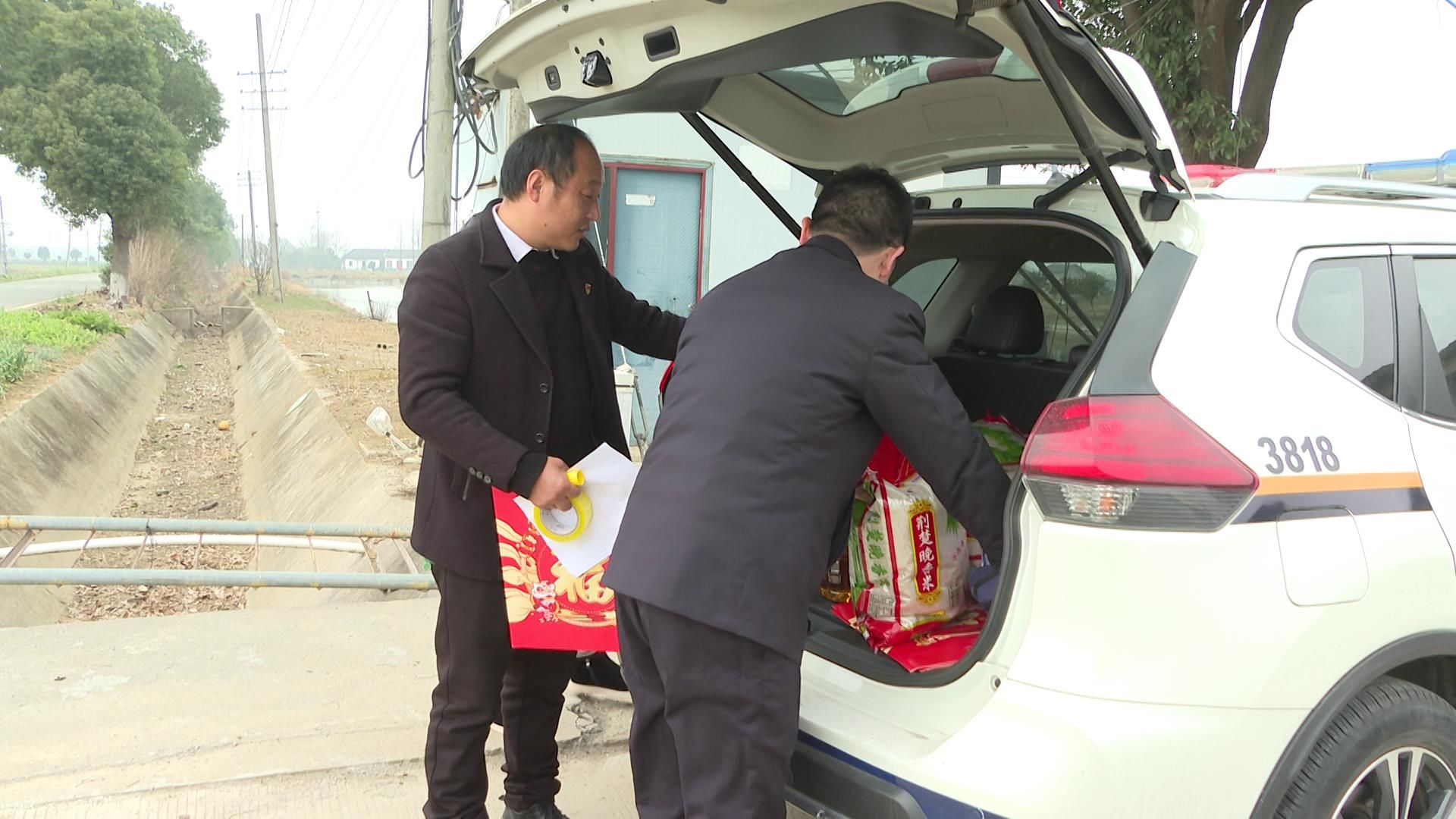 座谈结束后,与会人员分组走访慰问双湖村老党员、生活困难党员、群众,倾听他们的诉求并做好记录,同时为他们送上大米、食用油等生活物资,贴上春联、福字。
