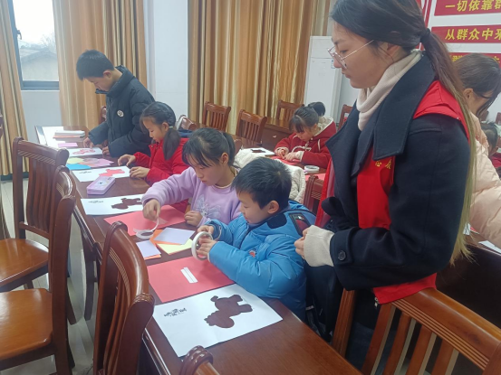 上午,托管班以作业辅导拉开序幕。在志愿者们耐心细致的辅导下,孩子们专心致志地完成各自的寒假作业,学习氛围浓厚。完成作业后,活动转入轻松愉快的互动环节。孩子们在志愿者的指导下动手剪纸,一张张彩纸在孩子们的巧手中变幻出各式图案,锻炼了孩子们的动手能力与创造力。