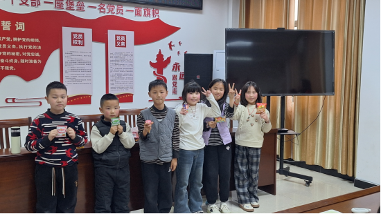 随后,全体孩子与志愿者移步社区门前文化广场,全体小朋友们分成三队开展了充满趣味的“指尖传铅笔”团队接力比赛。孩子们分组协作,小心翼翼地用指尖传递铅笔,现场既紧张又充满欢声笑语。经过激烈角逐,最终决出一、二、三名。下午活动开始前,社区为获胜小组颁发小奖品,孩子们脸上满是自豪与喜悦。