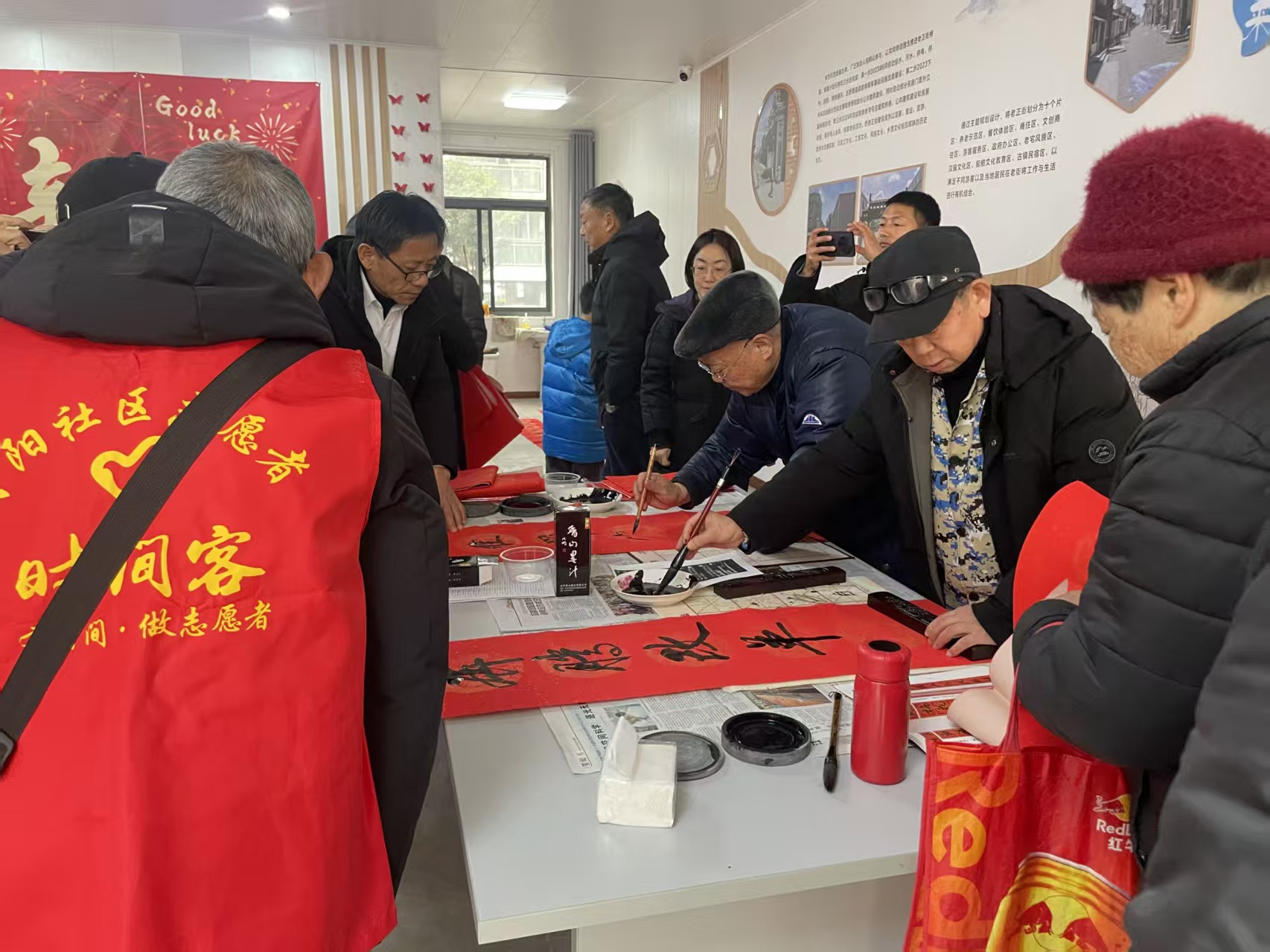 活动现场暖意融融、亮点纷呈,处处洋溢着浓厚的年味儿。一侧的写春联送祝福环节墨香四溢,书法家们凝神挥毫、笔走龙蛇,“马年大吉迎祥瑞,邻里和睦共安康”“春风送暖入社区,骏马奔腾启新程”等一副副寓意美好的春联跃然纸上,浓浓的年味在笔墨书香中悄然蔓延,也让传统民俗文化在社区落地生根、传递温情。