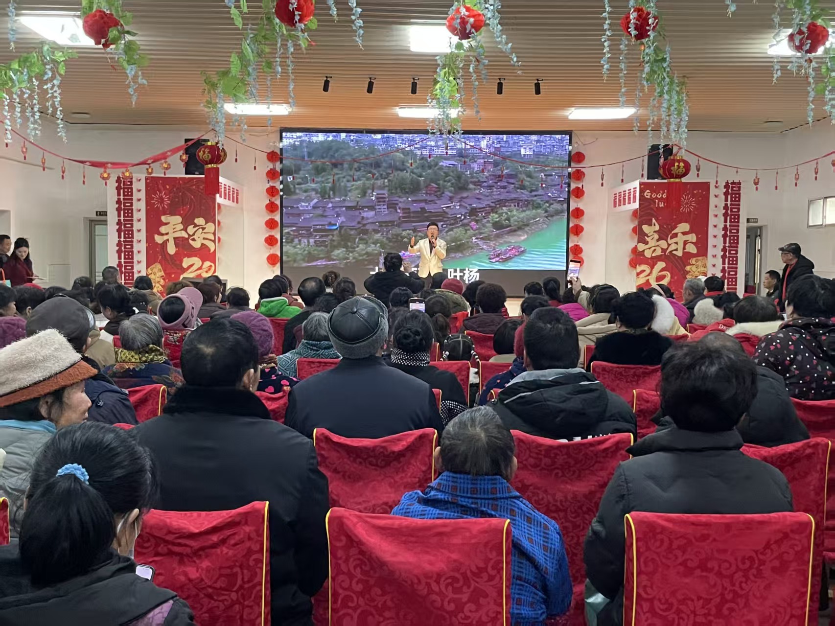 随后,以“奔腾马年新气象,文明社区共欢歌”为主题的迎新春联欢会正式拉开帷幕。主持人用一句句诚挚的问候、一声声美好的祝福,瞬间点燃了现场的喜庆氛围。由社区文艺爱好者、热心居民自编自演的舞蹈、歌曲、乐器演奏轮番上演,既有浓郁的乡土韵味,又有鲜活的时代气息,充分展现了董市社区居民积极向上、热爱生活的精神风貌。欢快的舞蹈跳出了马年的精气神,悠扬的歌声唱出了对美好生活的向往,台上演员倾情演绎,台下观众掌声不断、笑意盈盈,欢呼声、喝彩声此起彼伏,将现场氛围一次次推向高潮。