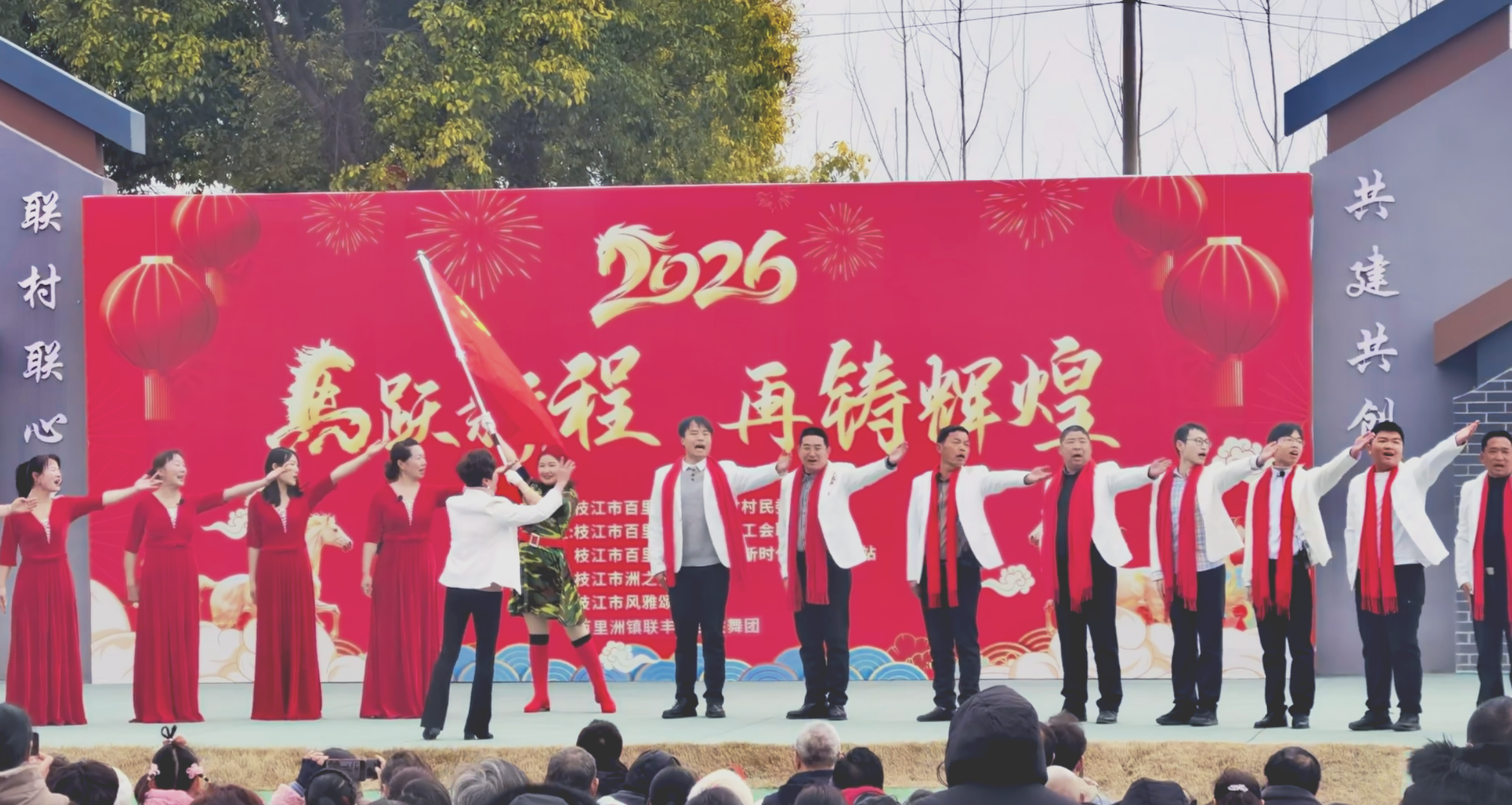 枝江融媒(通讯员 周欣艺)2月7日,百里洲镇联丰村“跃马新程 再创辉煌”春节晚会举行,村民们欢聚一堂,在欢歌笑语中喜迎马年新春,共话乡村发展新愿景。