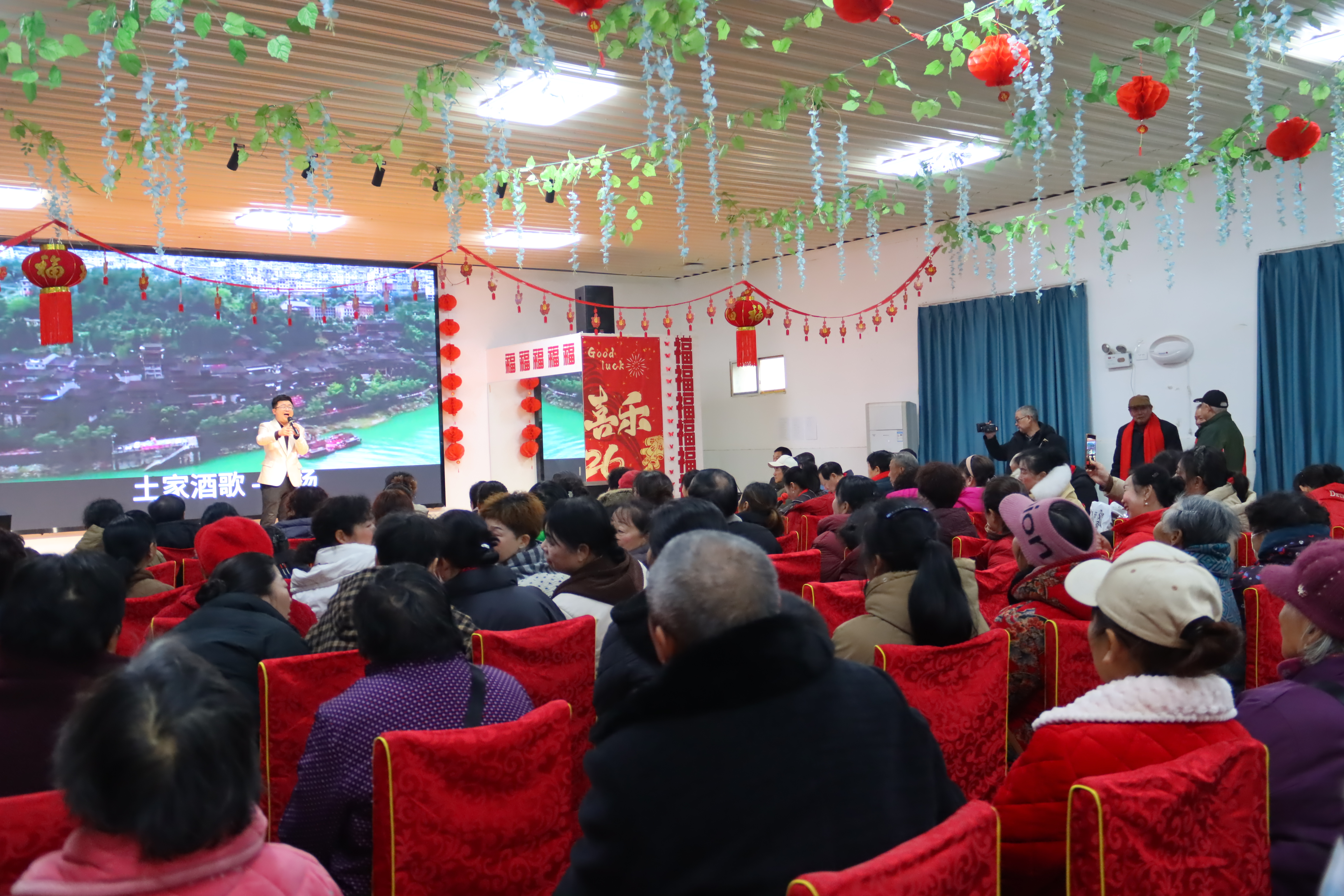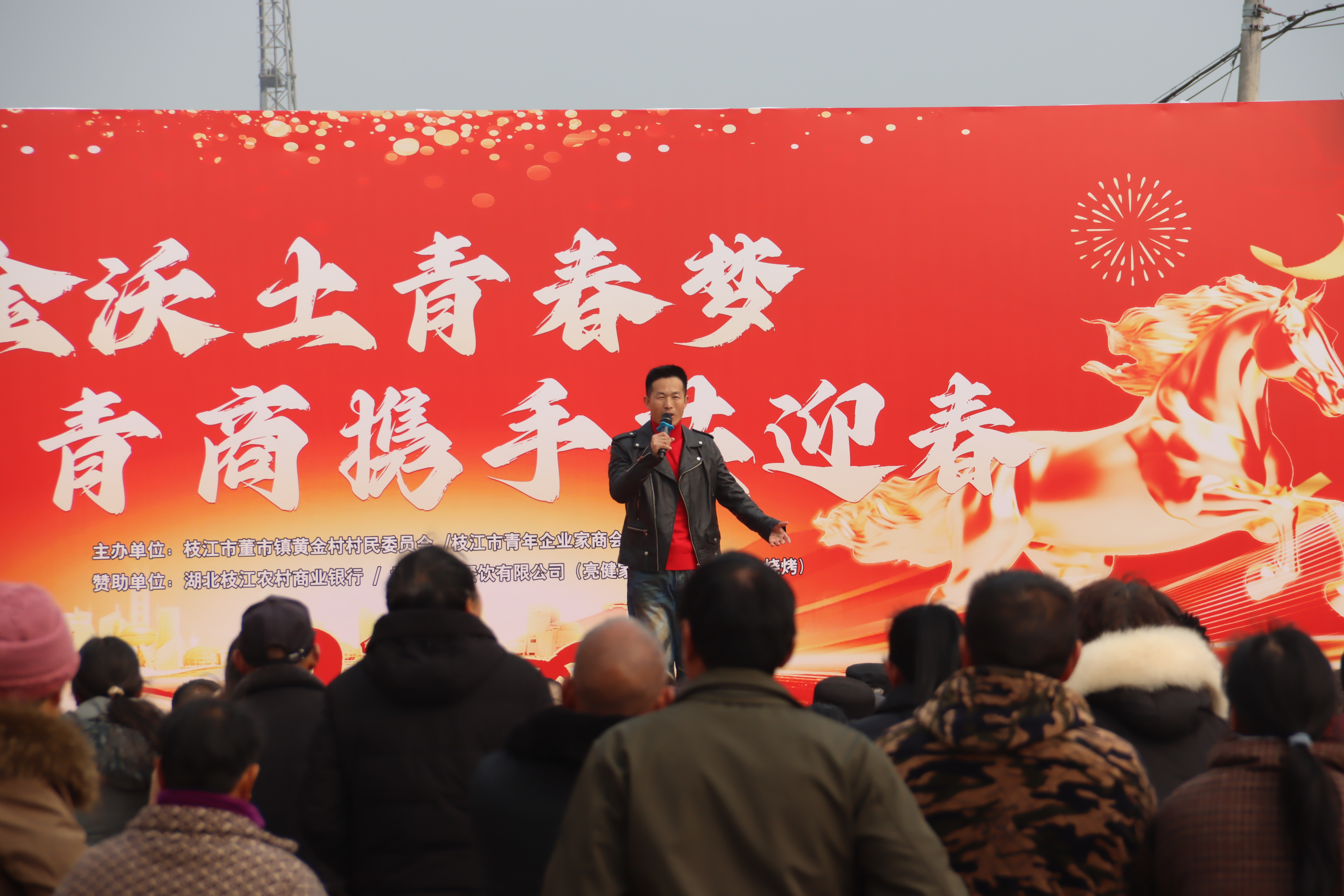 黄金村的春节联欢活动则聚焦“青春与合作”,以“黄金沃土青春梦 青商携手共迎春”为主题,邀请枝江市青年企业家商会参与联动。活动现场,歌曲演唱、互动抽奖等环节轮番上演,台上演员倾情演绎,台下观众热情互动,欢呼声、笑语声此起彼伏。青年企业家们的参与,不仅为活动增添了活力,更彰显了政企同心、助力乡村发展的决心,让“青春范儿”与“烟火气”在乡村舞台上完美碰撞。