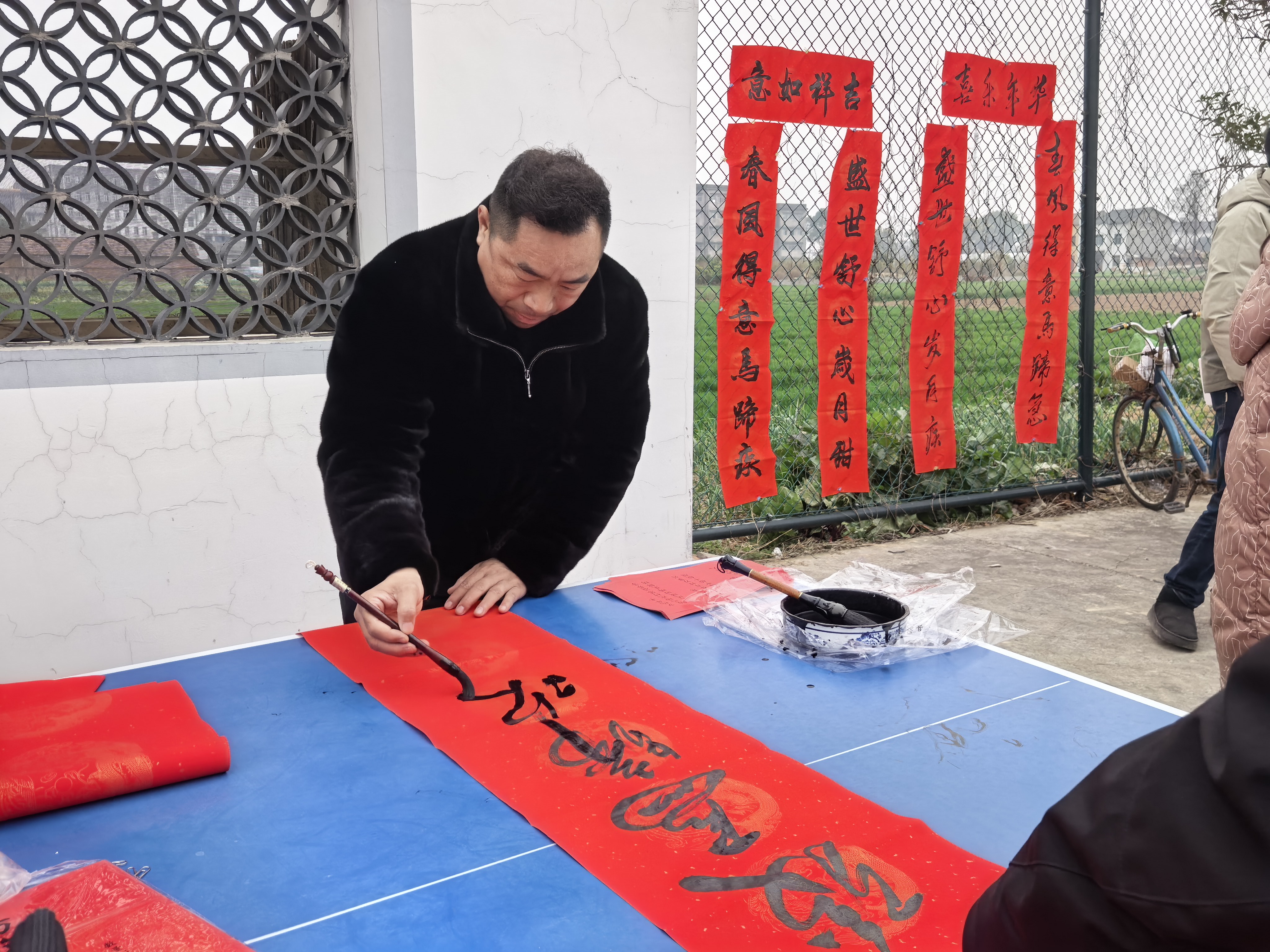 舞台之外,年味同样浓郁。书法家们现场泼墨挥毫,将新春期许凝于笔端,一副副喜庆春联、一个个吉祥福字送到村民手中;趣味猜灯谜活动吸引村民踊跃参与,在翰墨书香与灯谜雅趣中,共迎癸卯新春。舞台两侧,志愿服务与乡村市集相得益彰。志愿服务岗开展禁毒宣传等政策普及,农副产品展销区集中展示售卖马家店街道六村特色农产品,让村民赏晚会、学知识的同时购好物,更助力了乡村特色产业发展。