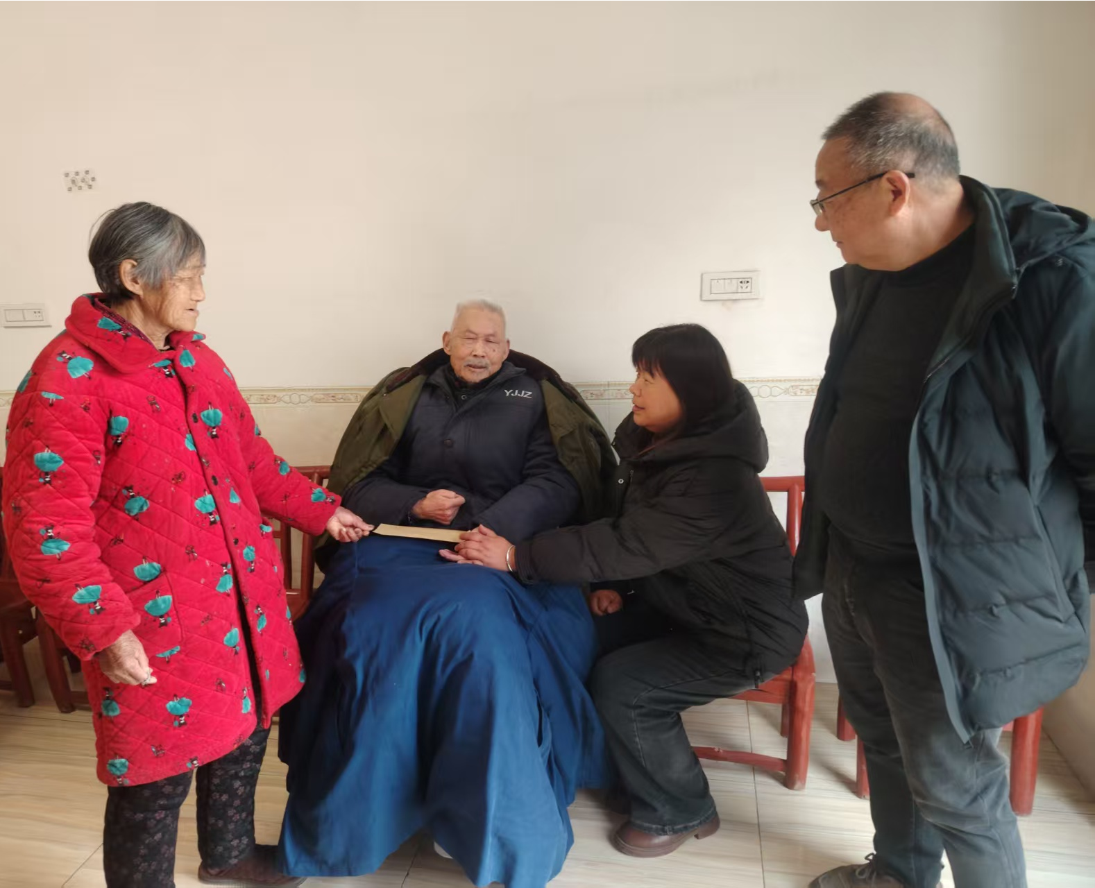 连日来,村“两委”走进多个湾落,深入到低保户、特困人员、残疾人和遭遇重大疾病等困难群众家中。“最近身体怎么样?”“年货准备了吗?”“生活上还有什么困难?”每到一户,村“两委”都与群众亲切交谈,详细询问他们的身体状况、家庭收入、医疗保障以及实际面临的困难,耐心倾听他们的心声和诉求。村成员不仅送上了米、面、油等生活必需品及慰问金,更注重传达党和政府的关心与牵挂,鼓励他们树立信心,积极面对生活挑战。