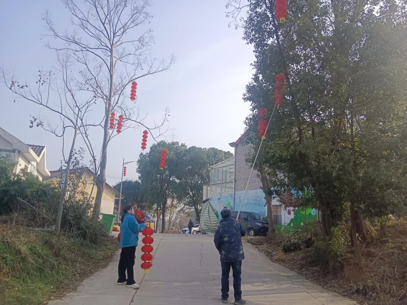 在村委会及周边主要区域,工作人员精心悬挂起了一盏盏大红灯笼。鲜艳的中国红随风轻摆,映衬着乡村景致,瞬间点亮了节日气氛,传递出浓浓的年味和对新春佳节的美好祝愿。