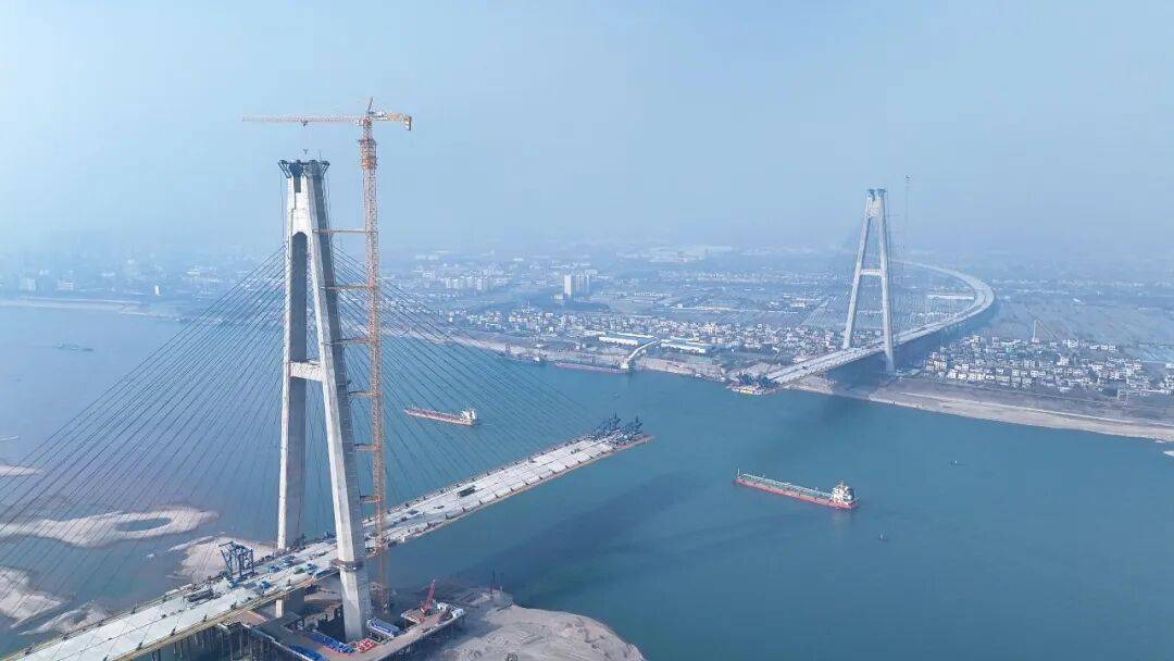 不远处的枝江长江大桥北岸已完成倒数第五片钢箱梁吊装,合龙在即。一桥架南北,天堑变通途,两岸50万枝江人千百年的共同期盼即将梦圆。