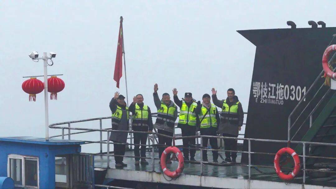 岸上的人归心似箭,船上的人也不曾停歇。同一时间,“鄂枝江拖0301”汽渡船上,35岁的驾驶员向旭东和船员们正做着开航前的准备。