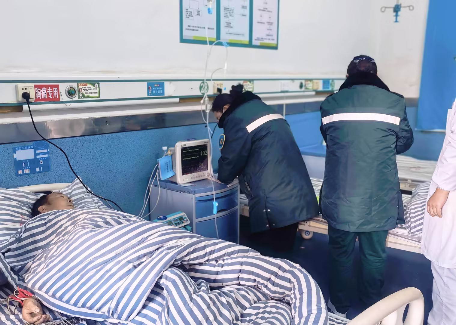 在启动溶栓治疗的同时,医护人员同步联系枝江市人民医院胸痛中心启动转运流程,患者病情初步控制后,立即被安全、快速地转运至上级医院接受进一步介入诊疗,一场高效的转运接力随即展开。依托枝江市完善的“乡镇卫生院—市级医院”胸痛急救联动体系,这场跨机构的救治接力高效落地。