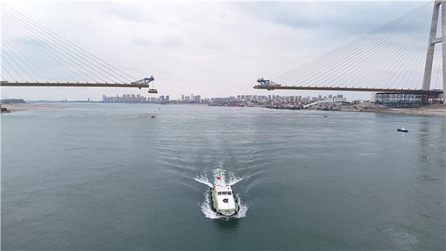 由于吊装作业区域占用长江航道,海事部门提前介入,为工程安全施工和航道畅通保驾护航。“节后复工首日,项目即开展大型吊装作业。我们提前发布航行通告,对相关航段实施科学管控。”枝江海事处七星台海巡执法大队副队长张家凯表示,“吊装过程中,海巡艇全程警戒维护,全力确保水上作业与船舶通航双安全。”