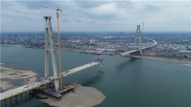 随着第21号钢箱梁精准就位,大桥钢箱梁架设任务将完成过半,为今年实现中跨合龙奠定坚实基础。江面上,已架设的桥面如钢铁巨龙般向江心延伸,与两岸巍峨塔柱遥相呼应。百米高空之上,建设者们正以实干担当续写“天堑变通途”的新篇章。