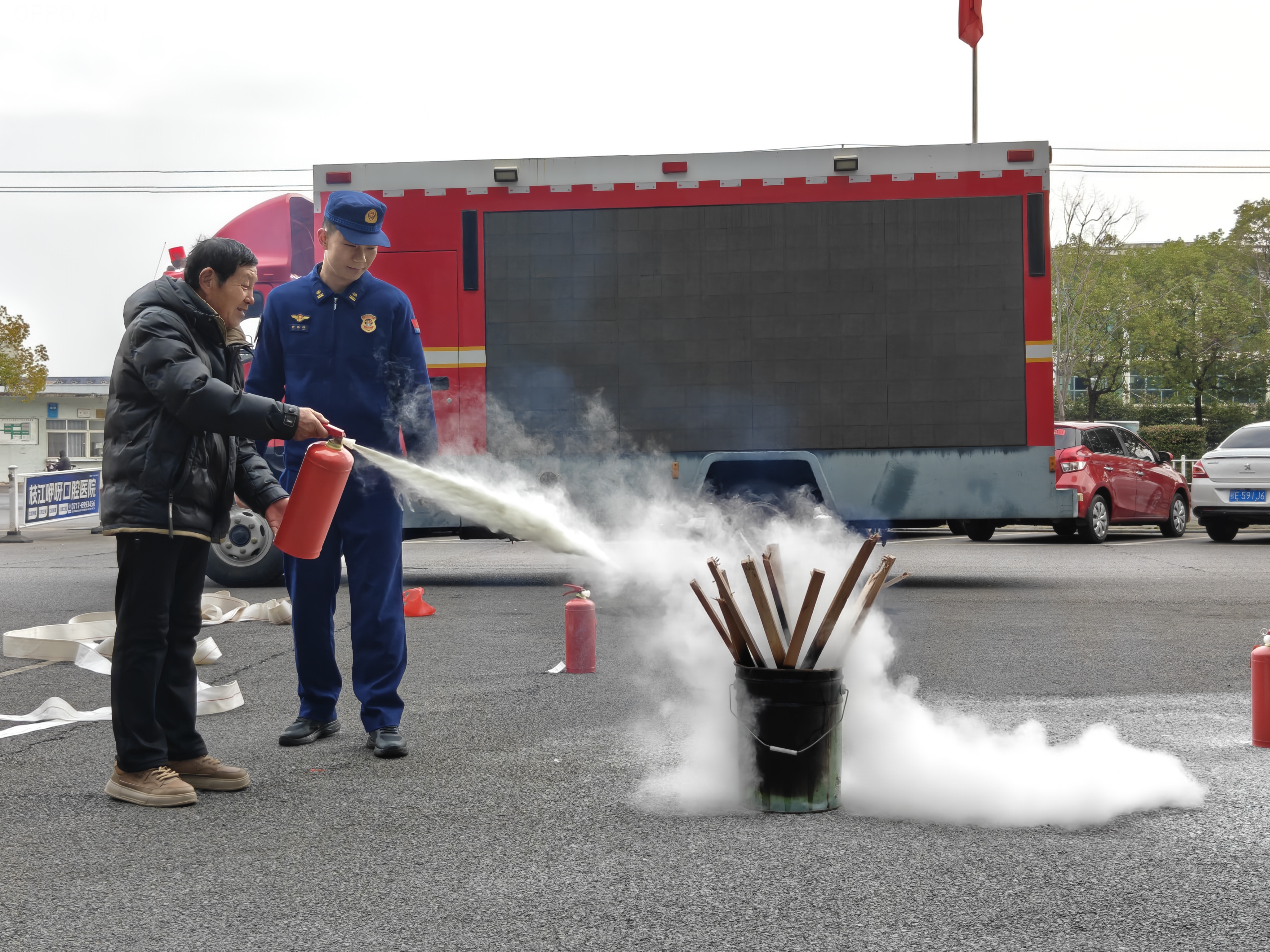 理论讲解后,宣传人员现场演示灭火器、水枪水带的正确操作方法,细致讲解使用流程与注意事项,组织参训人员分批次开展灭火实操演练,手把手指导大家“提、拔、握、压”,熟练掌握灭火技能,确保人人懂消防、会操作、能处置。