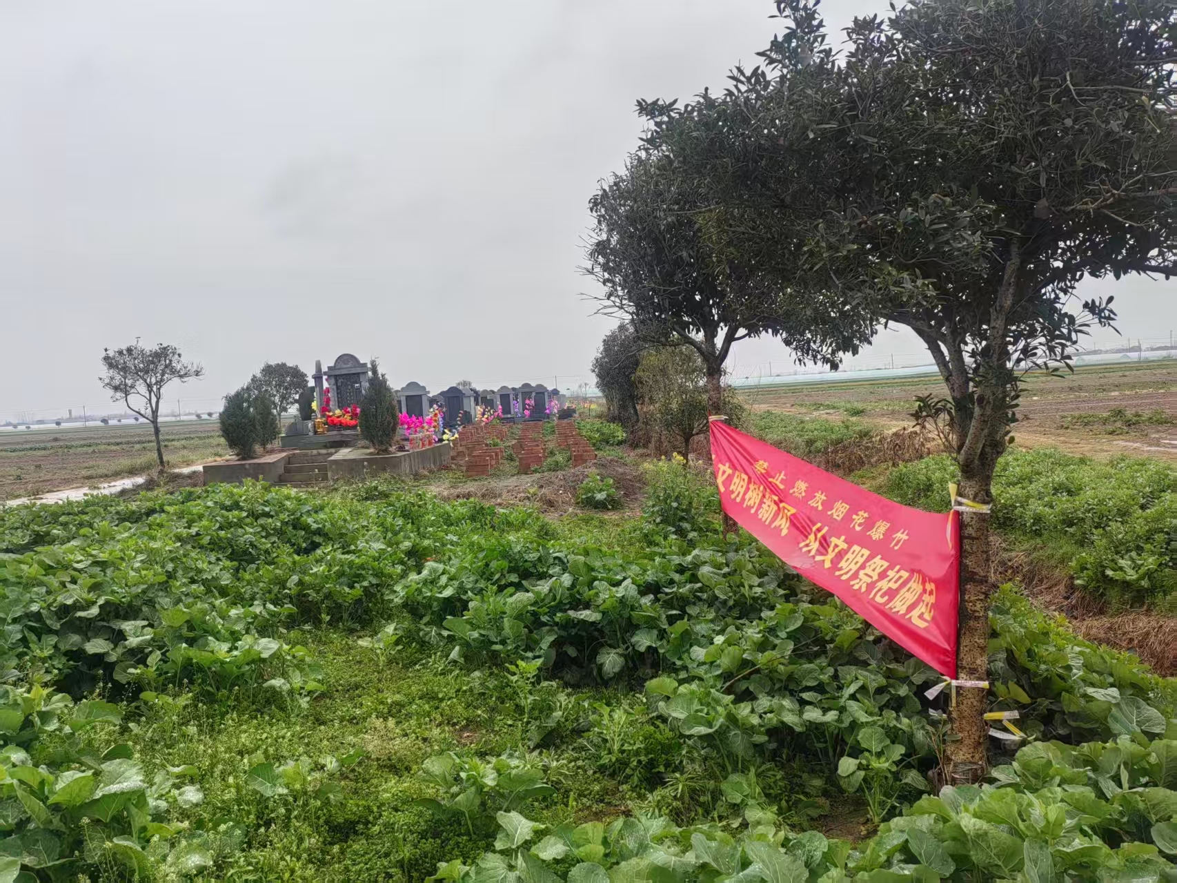 过去,每逢祭祀时节,烟火袅绕、爆竹喧天,不仅存在安全隐患,也污染了空气。如今,横幅高悬,润物无声。墓碑前,少了灰烬的狼藉,多了鲜花的静穆,越来越多的村民选择用肃立鞠躬这种最朴素的仪式,寄托对先人的哀思。