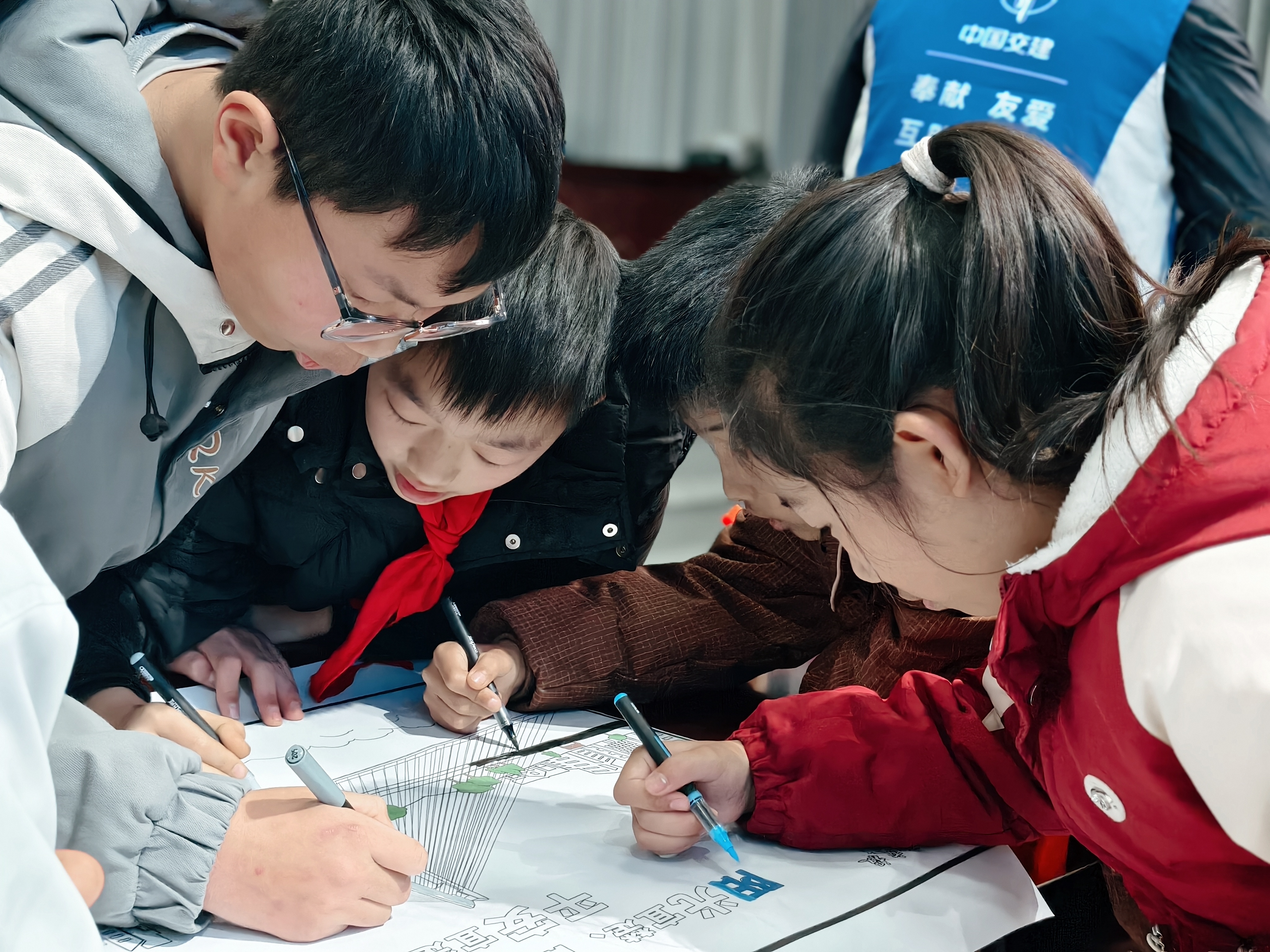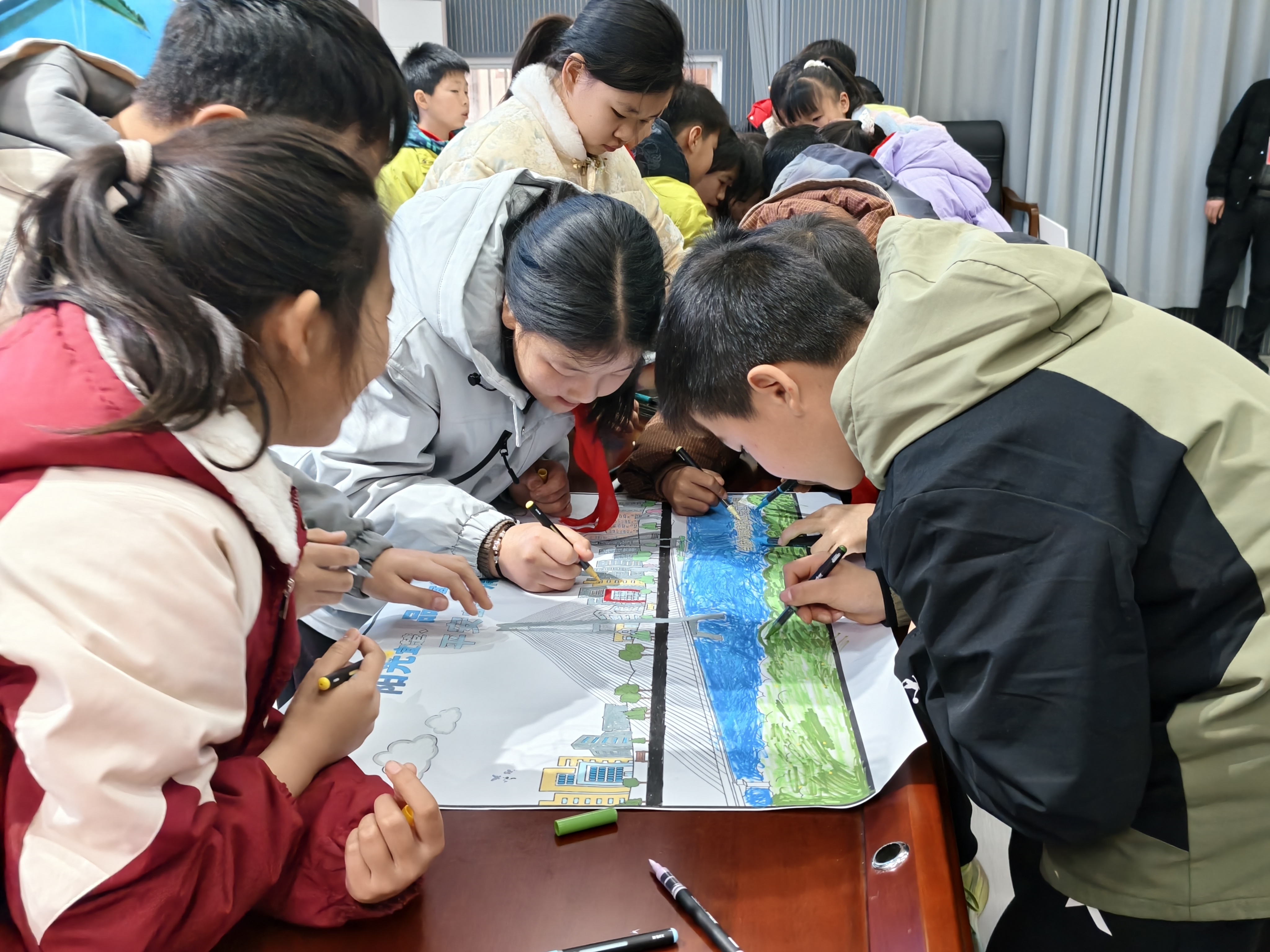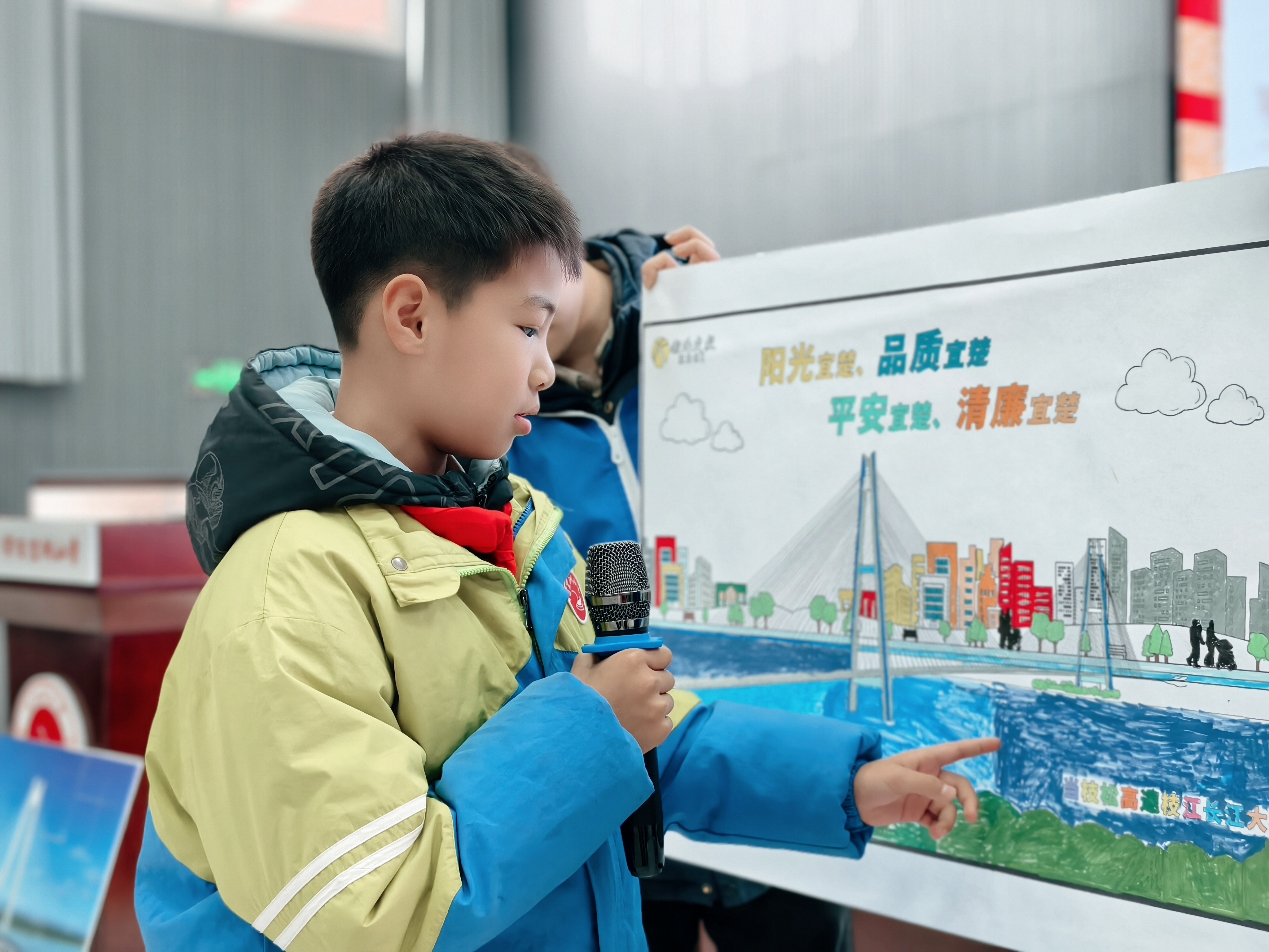 随后,志愿者开展大桥建设科普活动,通过图片、视频及通俗讲解,向学生介绍枝江长江大桥的建设意义、规模及技术特点,激发学生家乡自豪感。同时,组织“我心中的大桥”绘画涂色、大桥拼图等手工活动,加深学生对大桥的认识。此外,志愿者还开展“争当安全小卫士”道路安全培训,通过动画、互动问答等形式,普及交通安全知识,强化学生安全意识和自我保护能力。