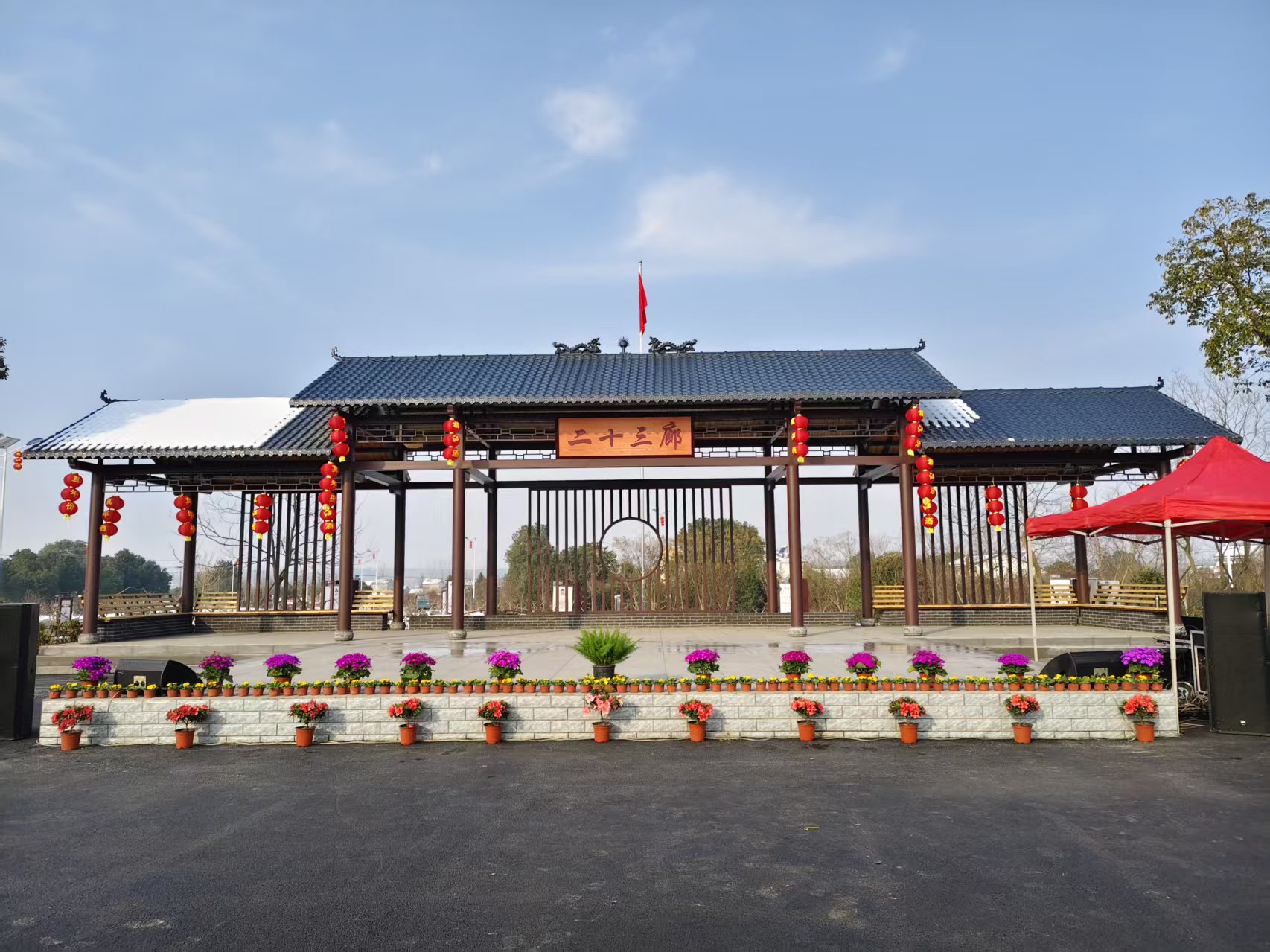 作为秦家塝村的门户,入口区域以“点睛之笔”实现华丽转身。新建的村赋文化墙、桃园景石与村标相映成趣,将村落文脉凝练于方寸之间;观景台与背景墙的巧妙搭配,既为往来游客提供了定格美景的绝佳视角,更让村口成为感知乡村气质的“第一窗口”。入村即入景,见景知文脉,此处已成为彰显秦家塝村人文底蕴与生态魅力的精神地标。