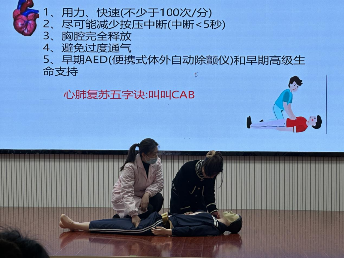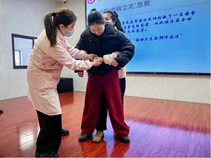 培训邀请市妇幼保健院医师王桂华现场指导。本次培训围绕幼儿常见创伤处理、幼儿龋齿与肥胖预防、心肺复苏、海姆立克急救法展开。